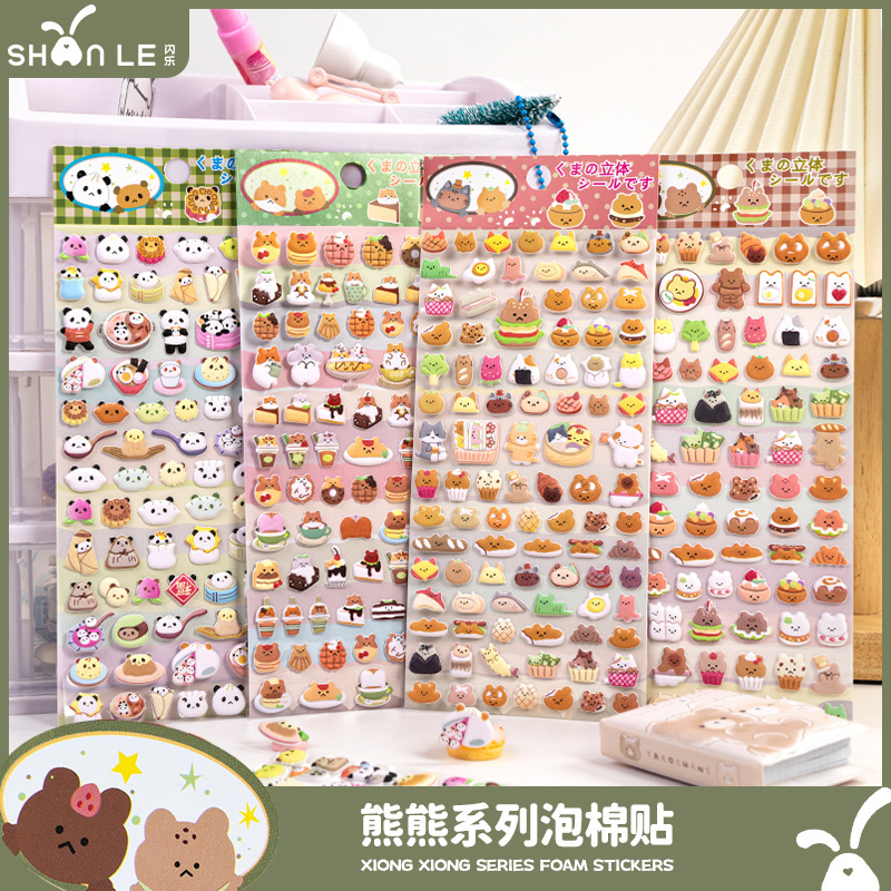 閃楽子供奨励シール熊甜品アニメかわいい泡綿貼り小動物日記手帳装飾貼り絵