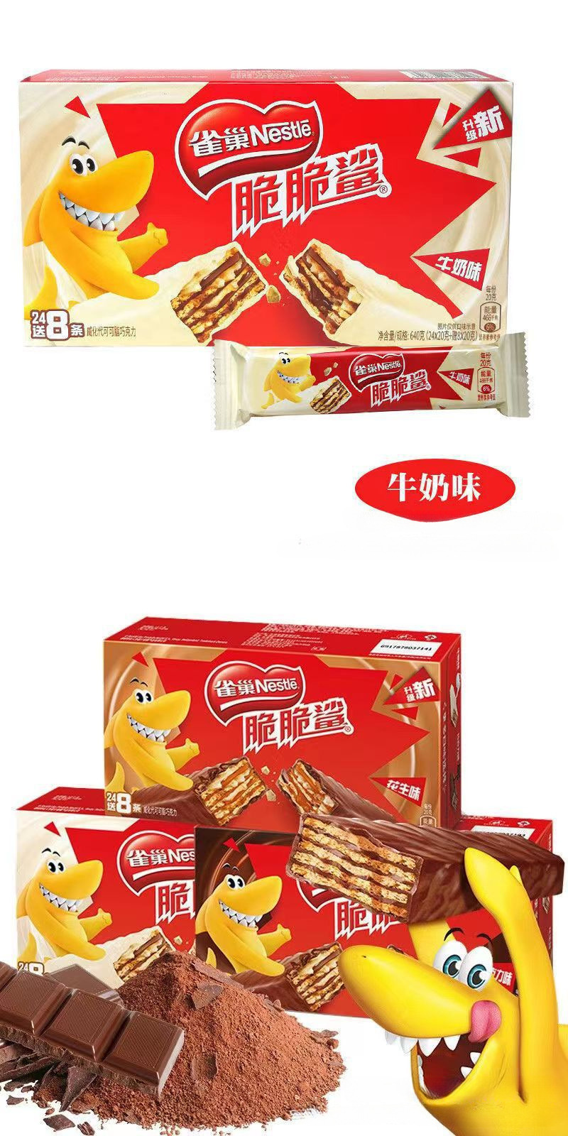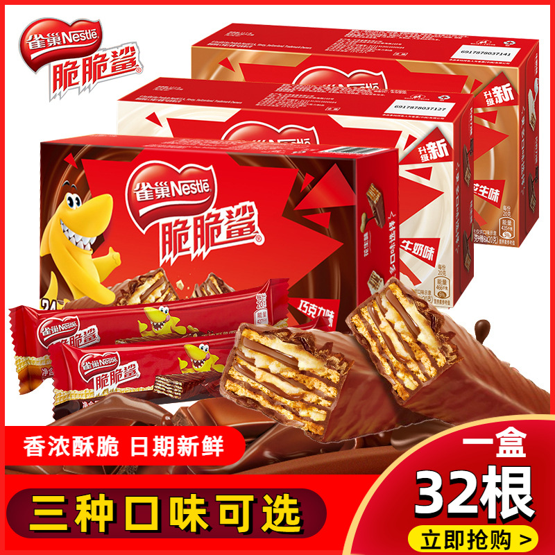 雀巢脆脆鲨巧克力威化32条饼干夹心零食小吃膨化