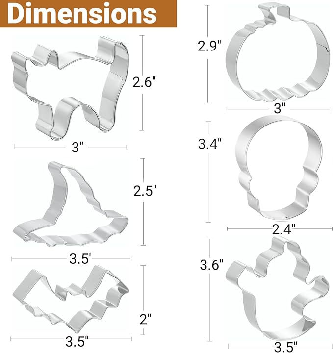 ハロウィン クッキー カッター 6 個 3inch ~ 3.5inch ゴースト、カボチャ、コウモリ、黒猫、帽子、スカル