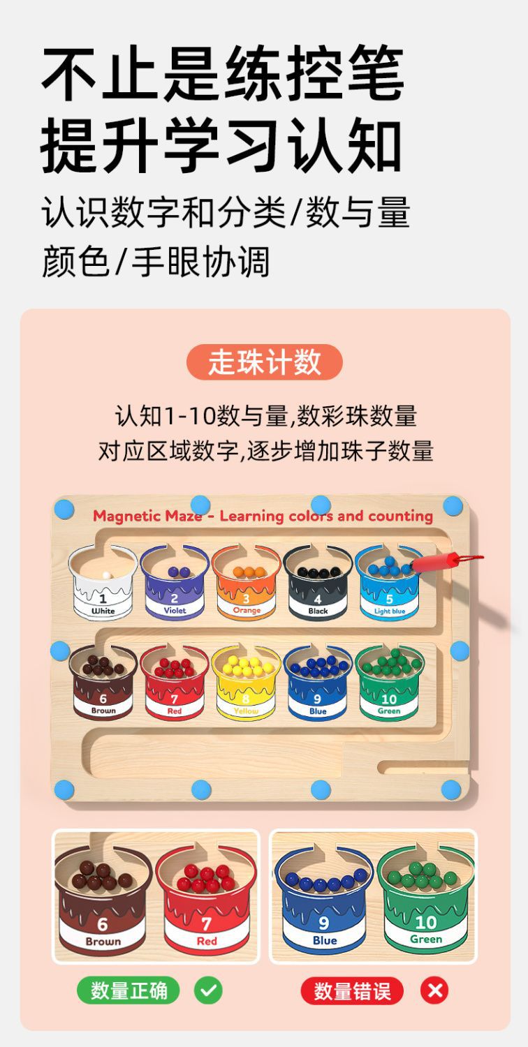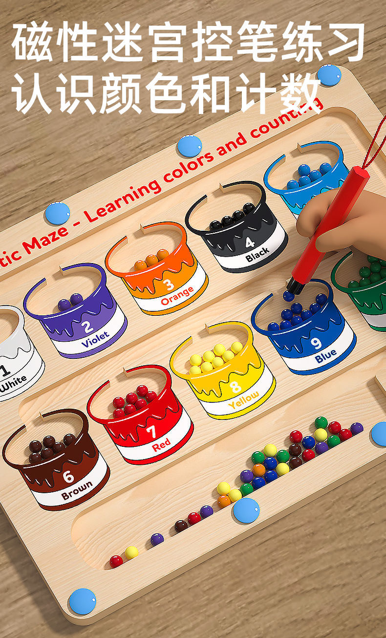 クロスボーダー二合一磁気走珠計数板色分類ゲーム子供早教運筆迷宮訓練玩具
