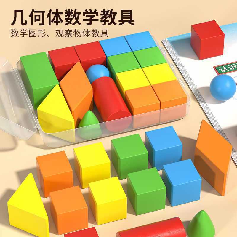 幾何学の図形の1学年の数学の教具の学具のフルセットの立体の積み木は正方形の長方形の三角柱を認めます。