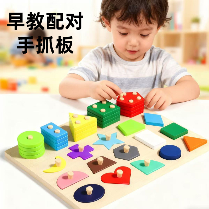 蒙氏早教手掴み板パズル知育玩具パネル児童認知ペア一歳半赤ちゃん積み木