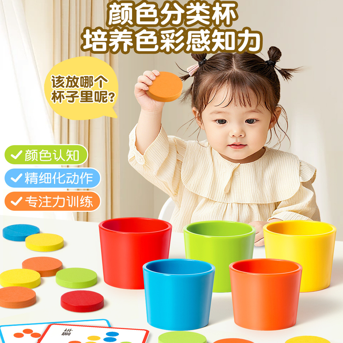 跨境蒙氏早教七色颜色认知配对分类杯儿童专注力训练益智玩具木质