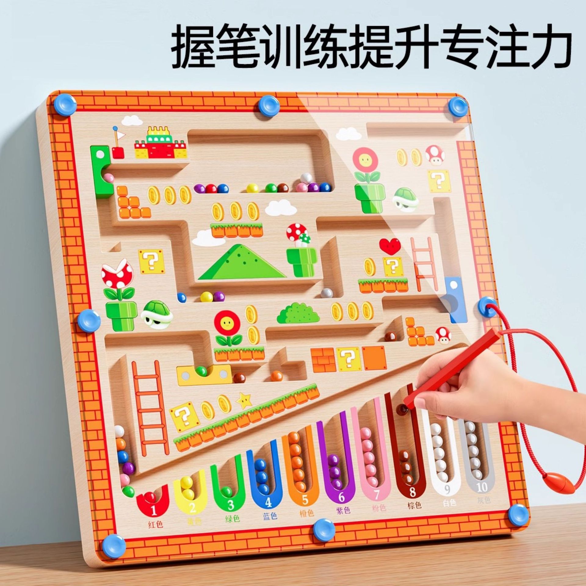 儿童磁力迷宫走珠专注运笔逻辑思维3-6岁早教益智木质玩具亚马逊