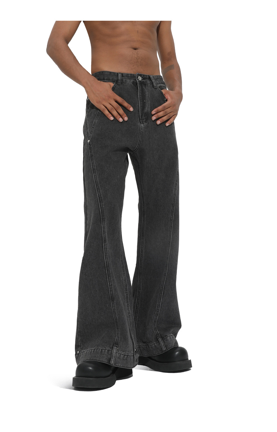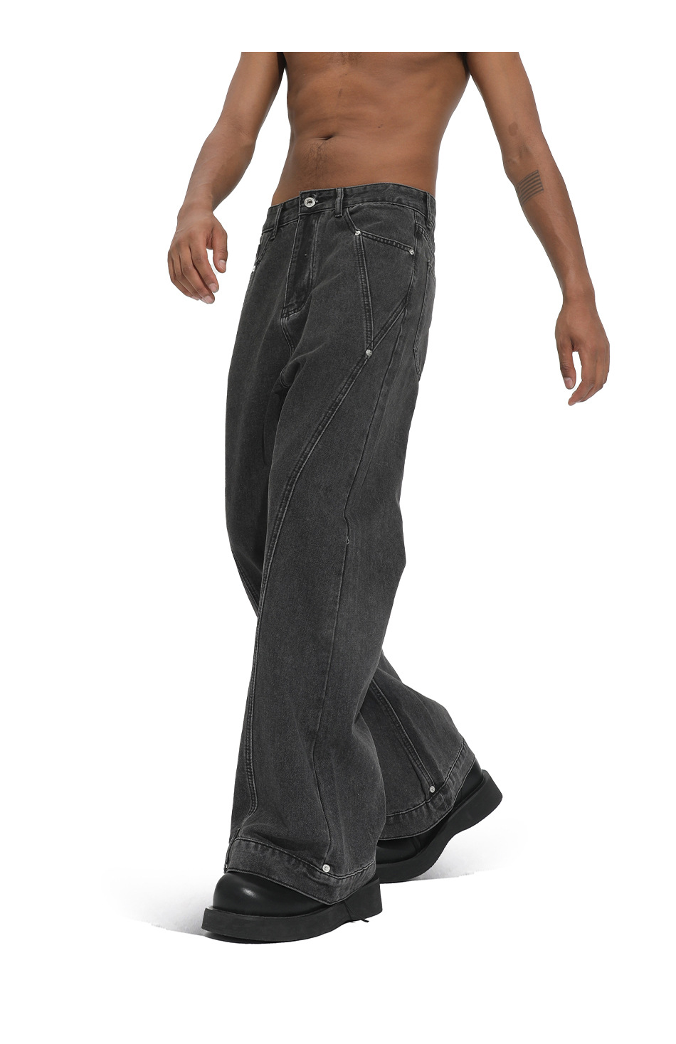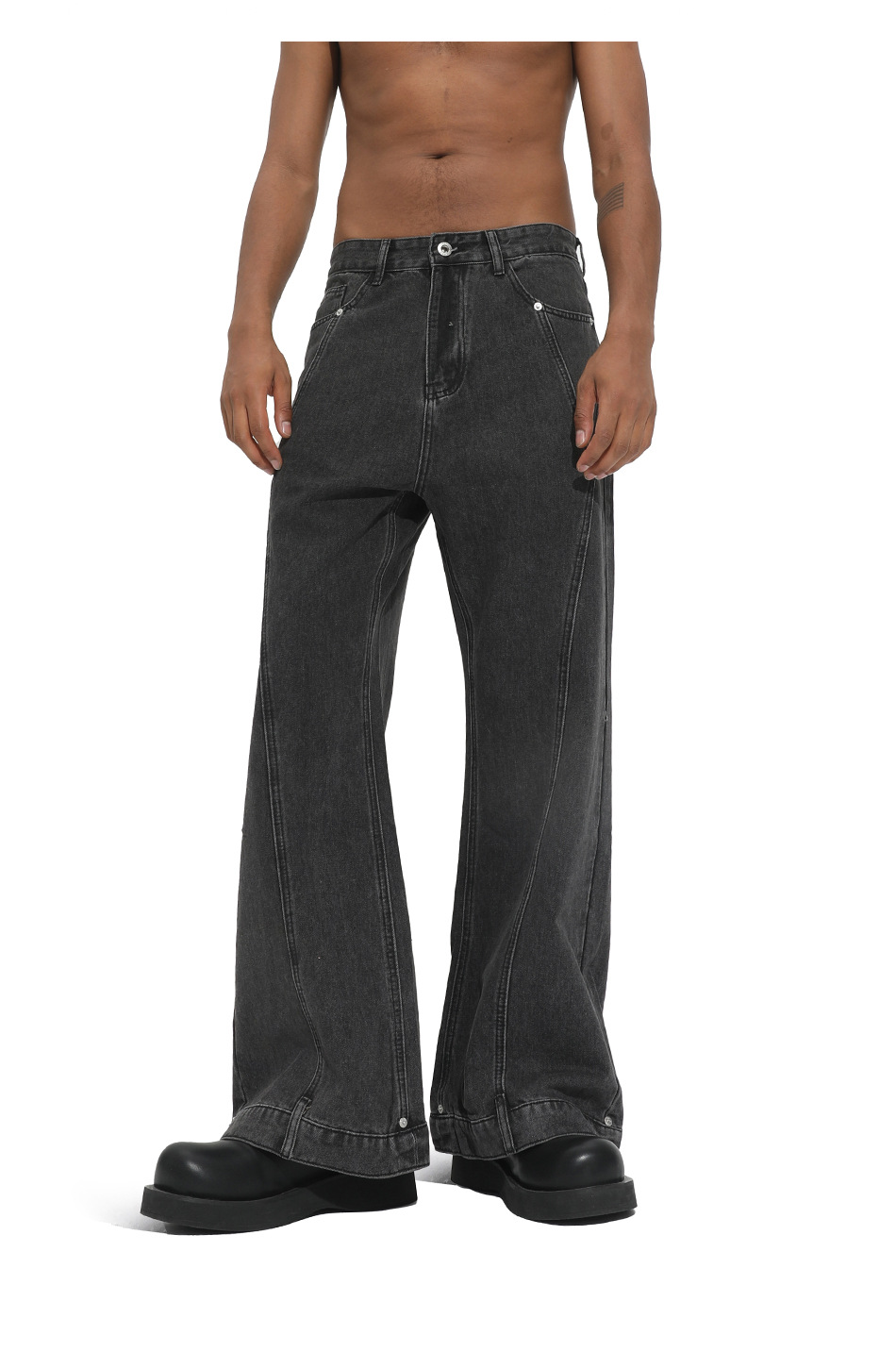 EFジーンズ | 四季対応の新作、ハイストリートスタイルのローエッジサイドジッパーデザインのマイクロフレアワイドレッグジーンズ
