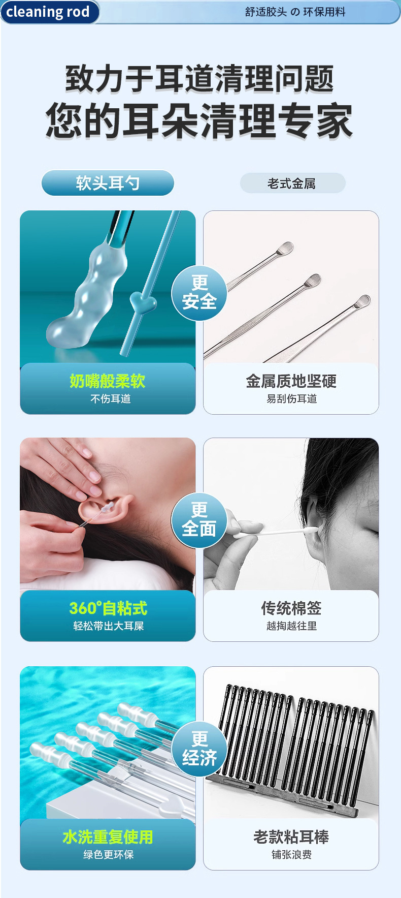 耳かきツール、強力耳粘着スティック、耳かきスプーン、子供用耳粘着スティック、耳を傷つけない、使い捨て耳かきスティック、綿棒スティック