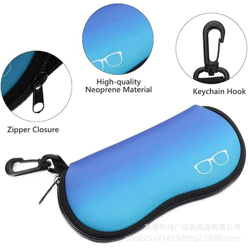 カスタムダイビング素材メガネバッグ、ネオプレンカラビナーメガネケース、ファッショナブルなジッパーフック付きサングラスバッグ