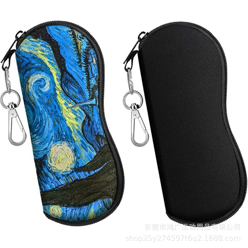 爆款热销潜水料眼镜包时尚印花眼镜袋旅行便携挂钩太阳眼睛盒