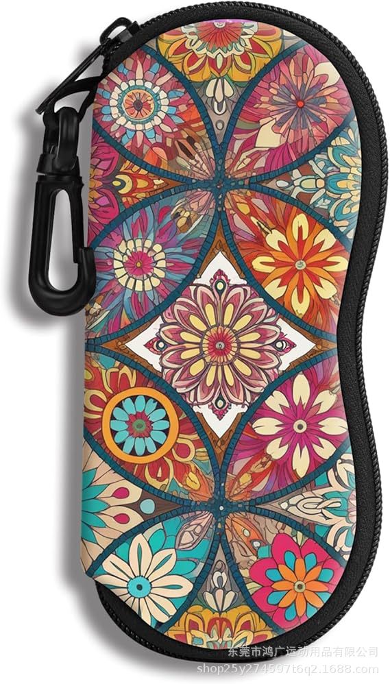 卸売ファッションプリントダイビング素材メガネバッグポータブル落下防止フックサングラスバッグ