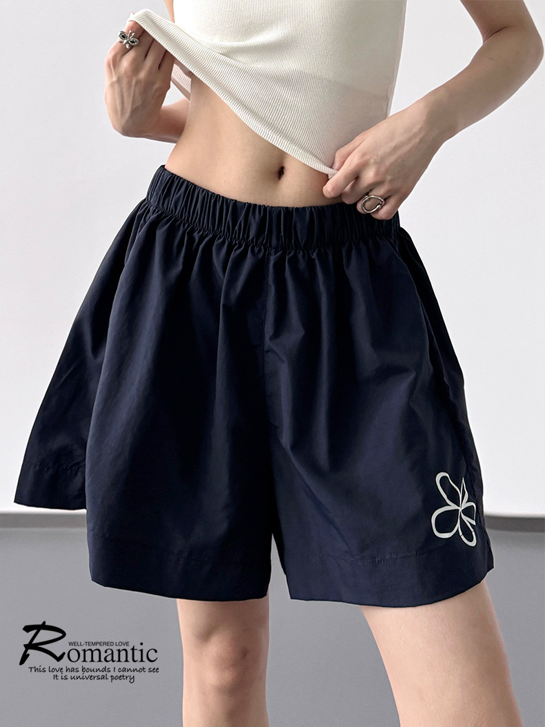 2025 新しい夏の女性の黒の花柄ショーツ女性のルーズカジュアルパンツ女性のホットスタイルストリートダンス 5 点パンツ