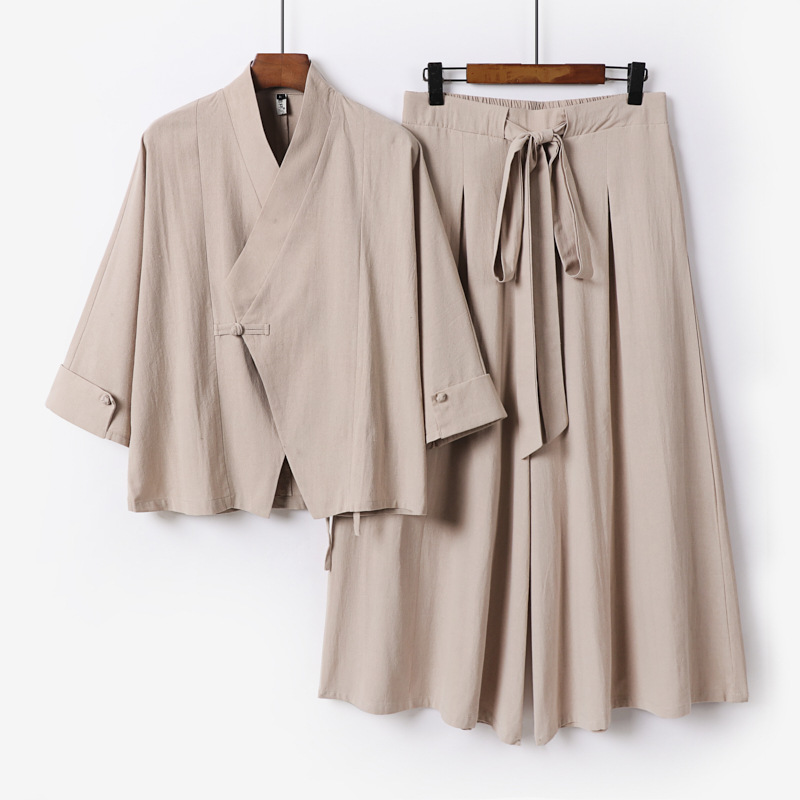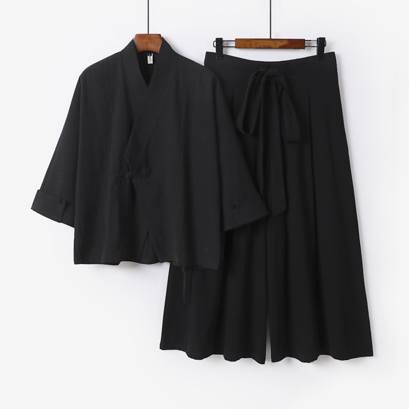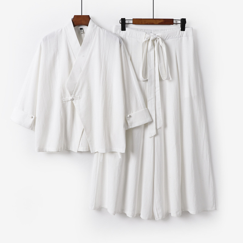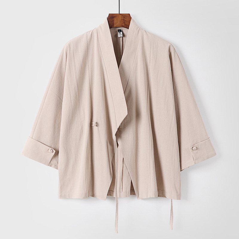 夏の綿と麻の唐スーツメンズボタン付き七分袖スーツプラスファットプラスサイズ薄い中国風スポーツ漢服スーツ