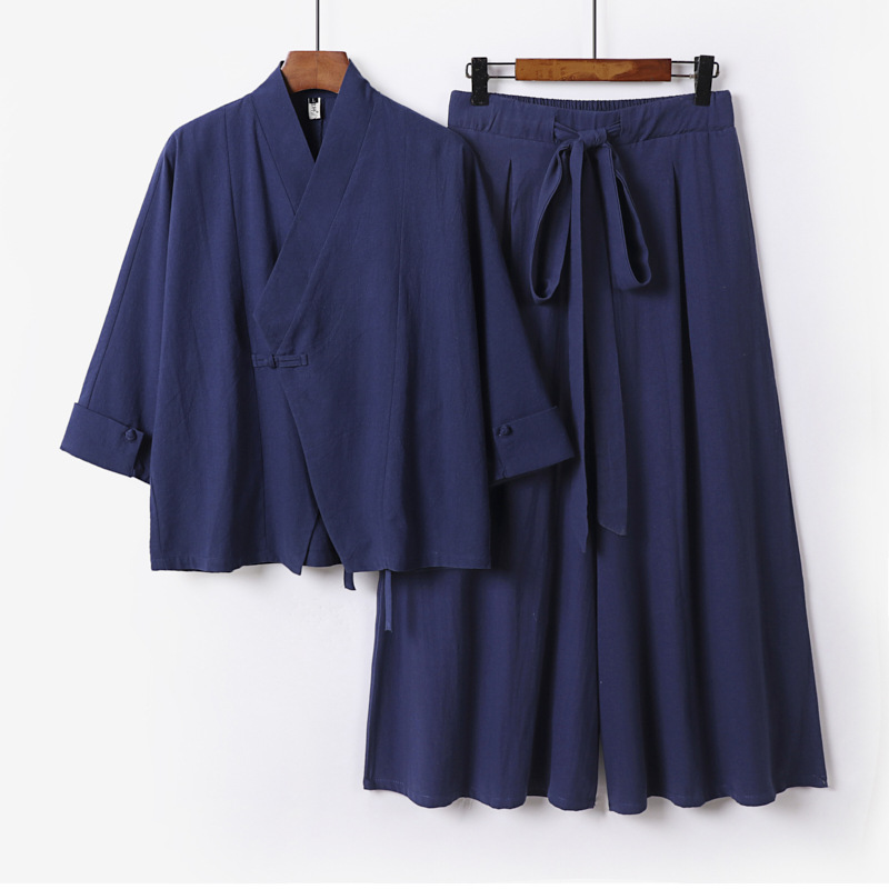 大きいサイズのリバーシブルデニムピュアコットン中国漢服ローブレトロ斜め前立てルーズ七分袖紳士服