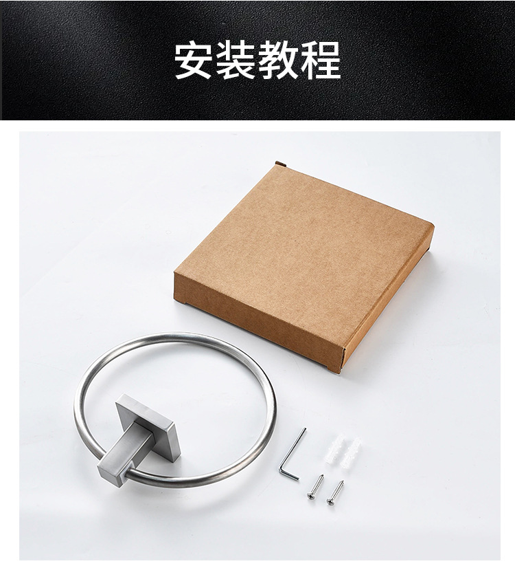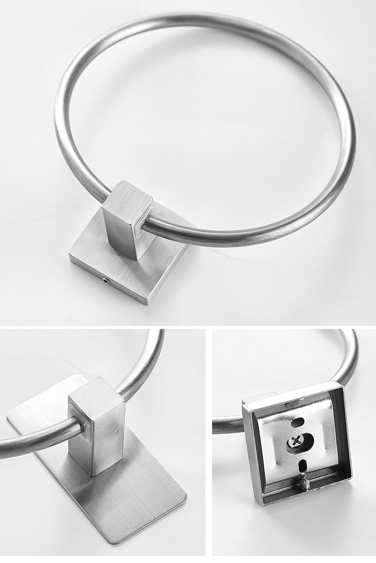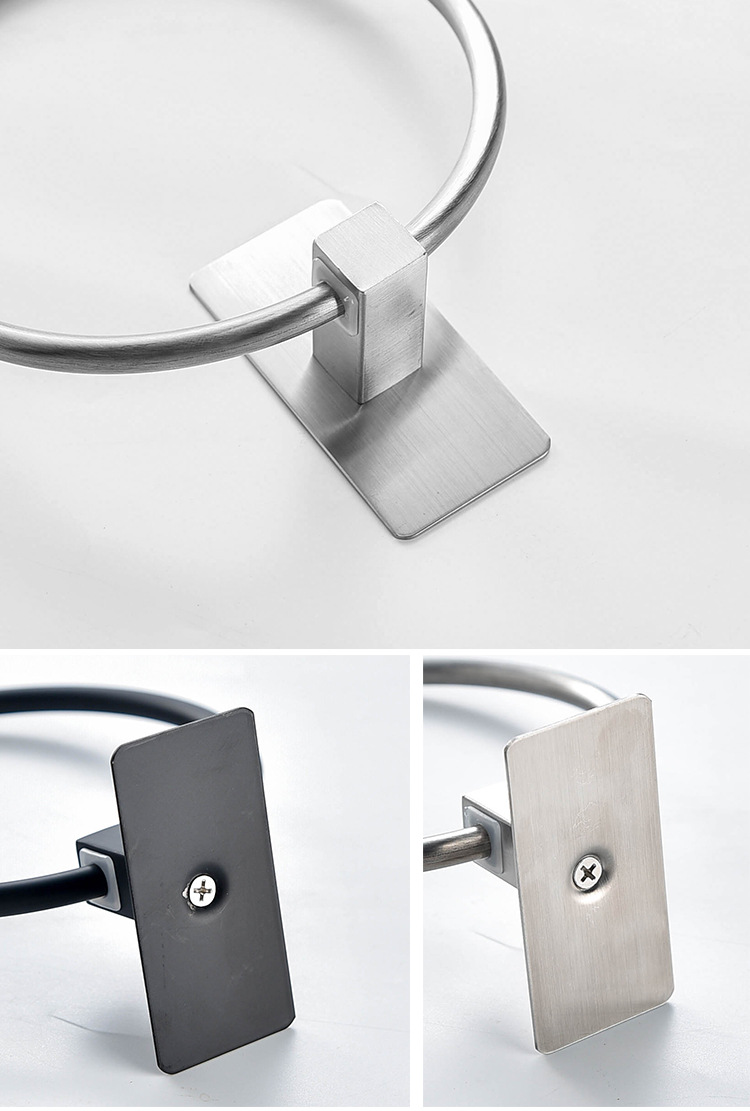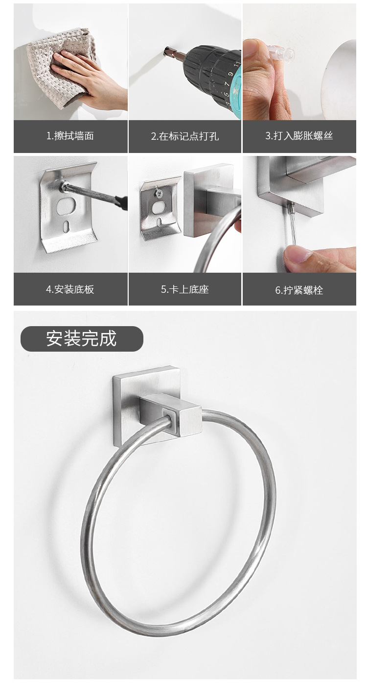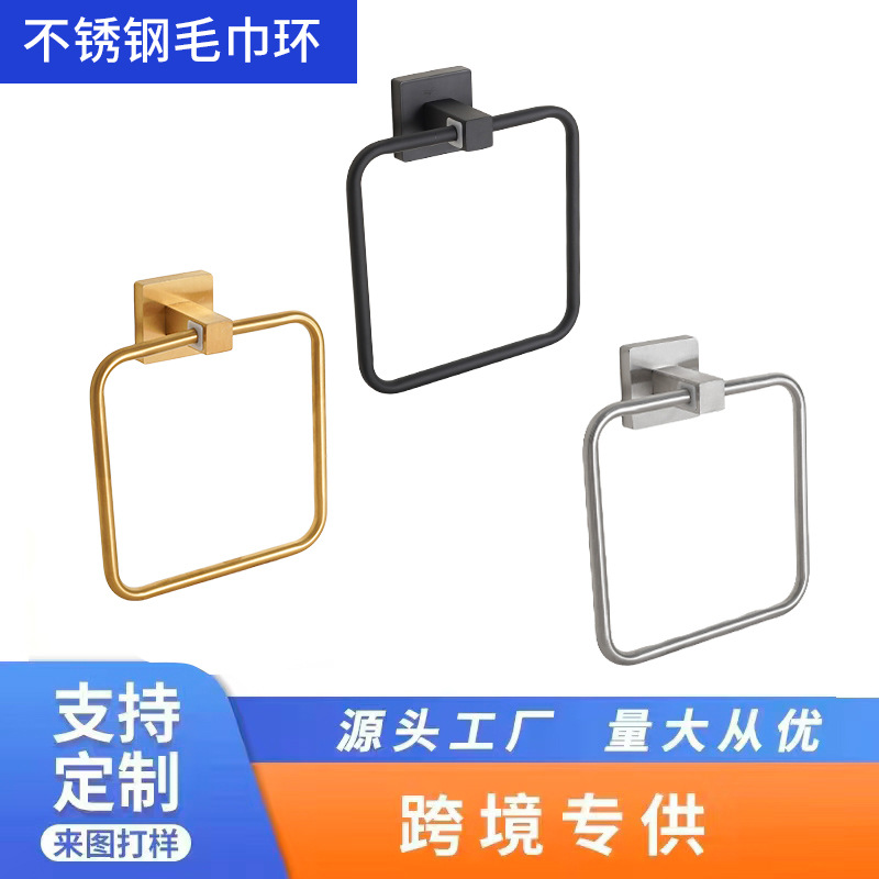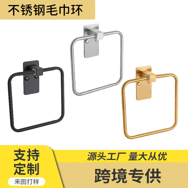 跨境不锈钢毛巾环浴室打孔正方形毛巾架卫生间免钉椭圆形工程挂环