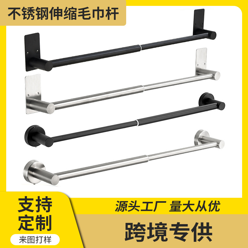クロスボーダー 304 新しいステンレス鋼格納式タオルラック浴室収納ラック浴室調整タオルバーシングルロッド