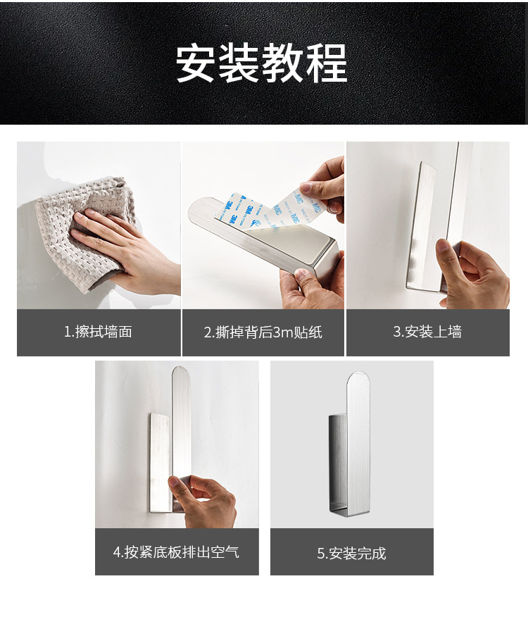 厂家304不锈钢黑色纸巾架 客厅窗帘钩卫生间圆形打孔纸巾架 跨境