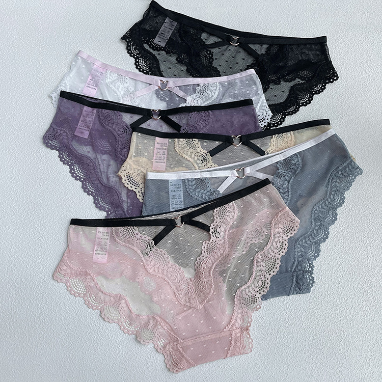 欧米のセクシーなレースの交差の細いリボンの蝶結びの三角のt字のズボンの女性の透明な透かし彫りの無傷の熱い三角のズボン