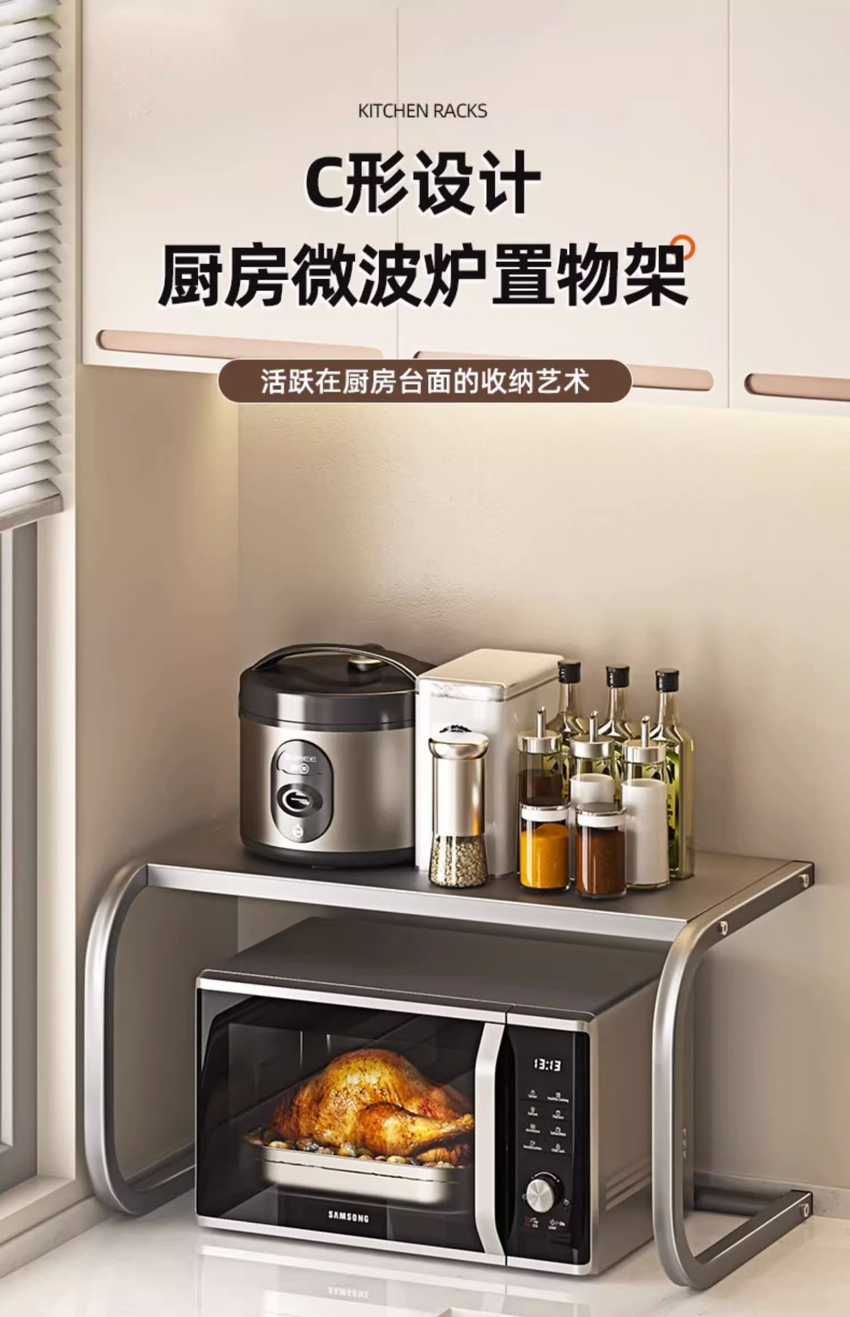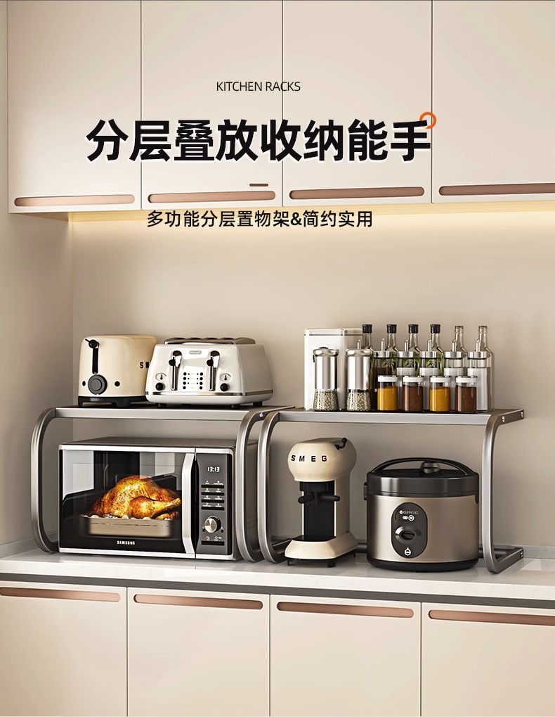 厨房置物架微波炉置物架家用台面式可伸缩放置烤箱厨房多功能支架