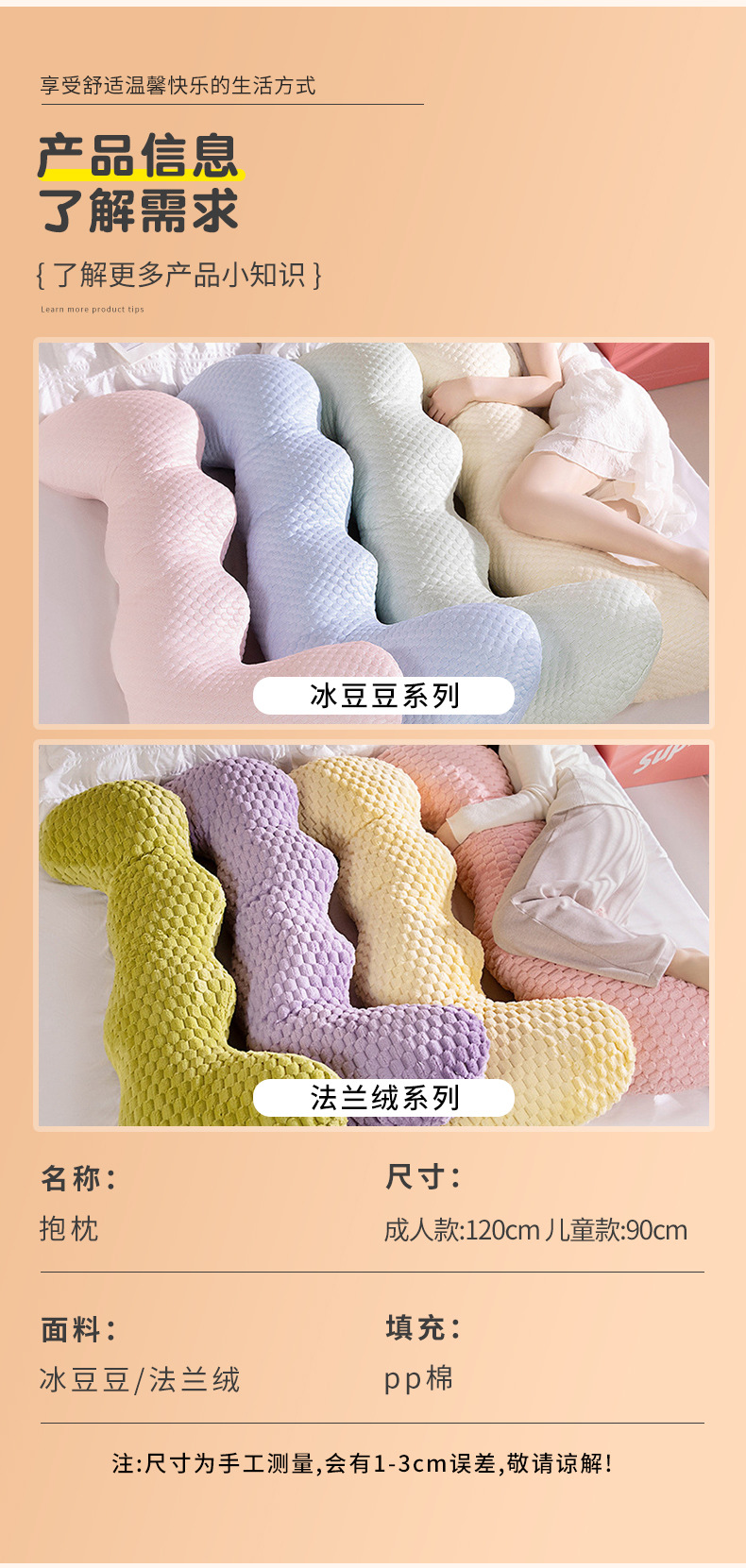 横向き寝用の長い枕、子供用ベッド用のアイスシルク、男の子と女の子用の睡眠アーティファクト、妊婦専用