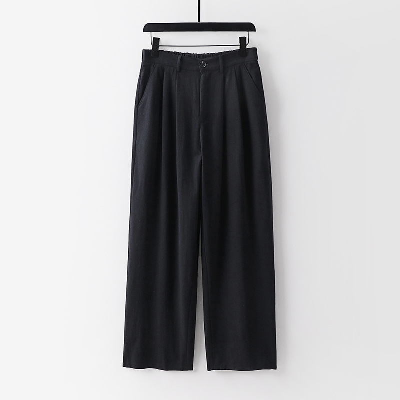 メンズ夏用カジュアルパンツ、薄手ランタンルーズコットンリネン7点カジュアルパンツ、8点ワイドレッグリネン7点パンツ
