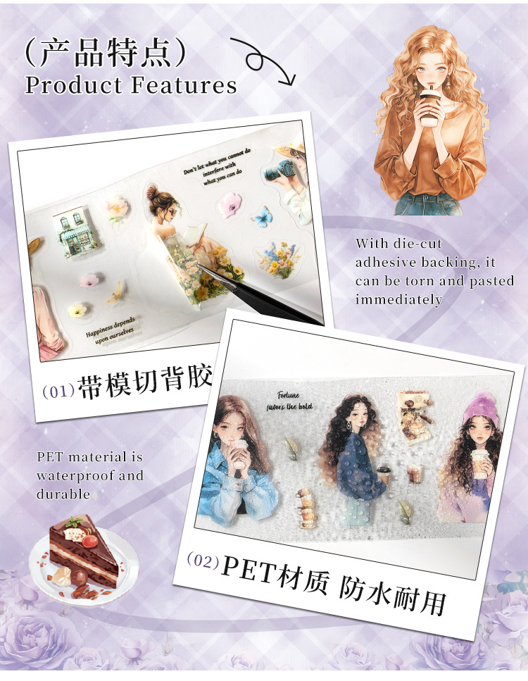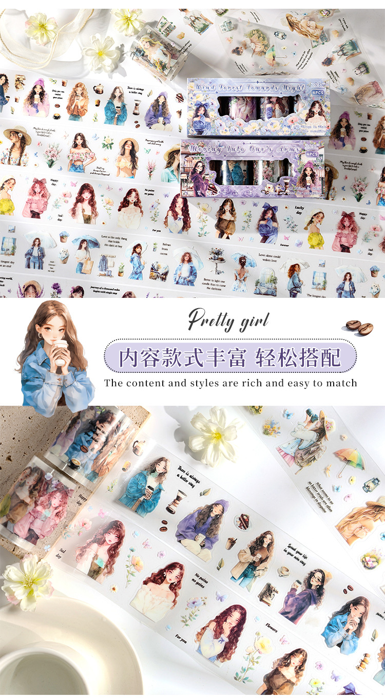 ハートビートゲストシリーズガールズライフ文学ハンドブックDIY装飾コラージュベース素材ハンドブックテープセットボックス