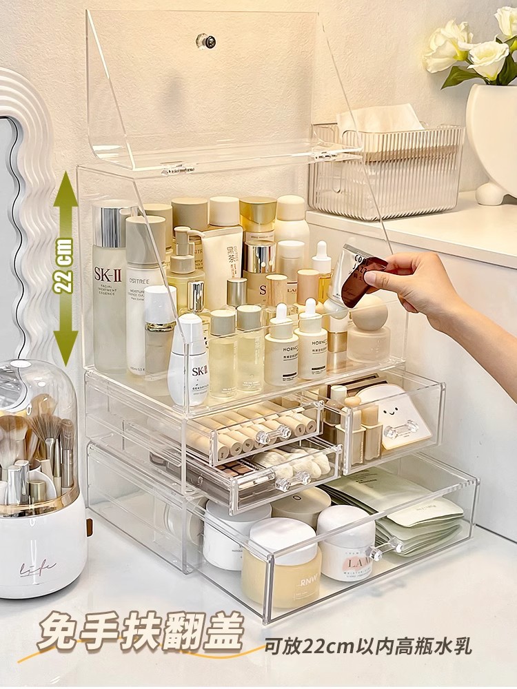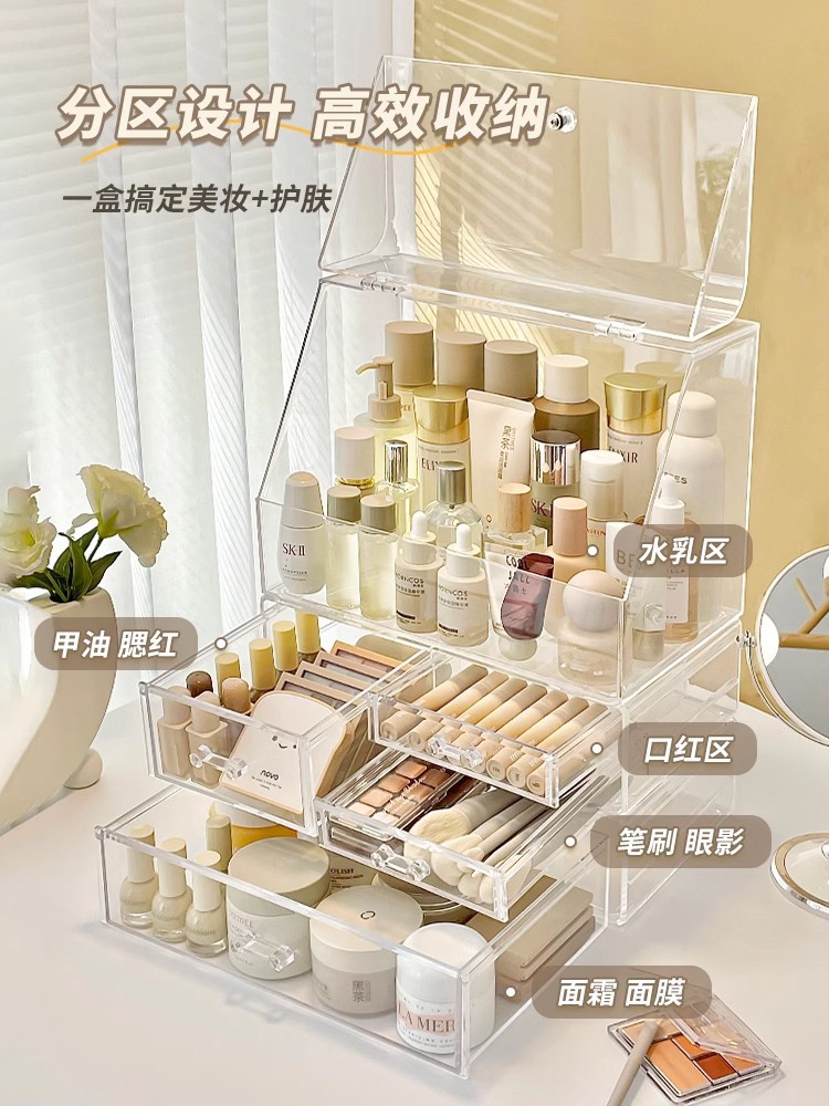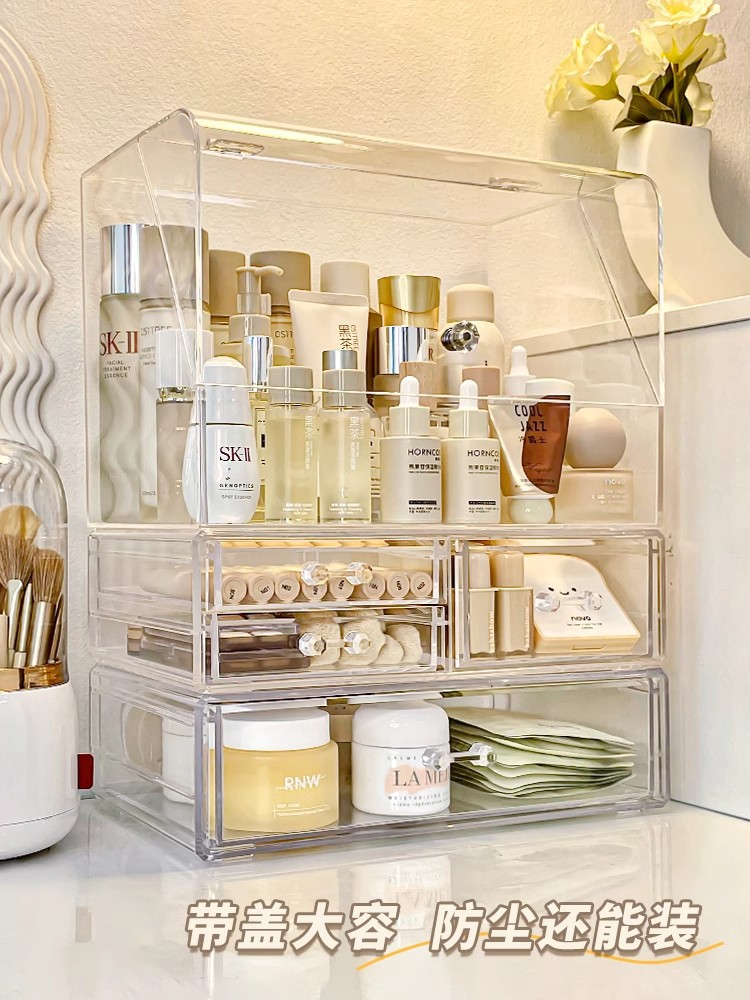 化粧品収納ボックスデスクトップ化粧台防塵大容量家庭用スキンケア口紅マスクプラスチック棚