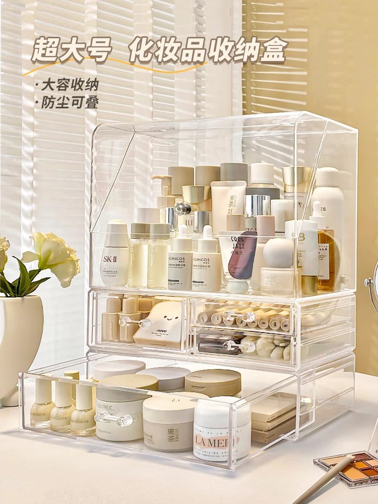 特大透明化粧品収納ケースプラスチック防塵スキンケア蓋付きアクリルデスクトップ化粧台棚