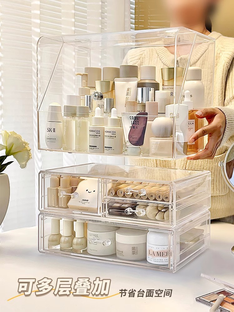 化粧品収納ボックス 高級感 透明アクリル 防塵 大容量 ドレッサー スキンケア用品 多層収納ラック