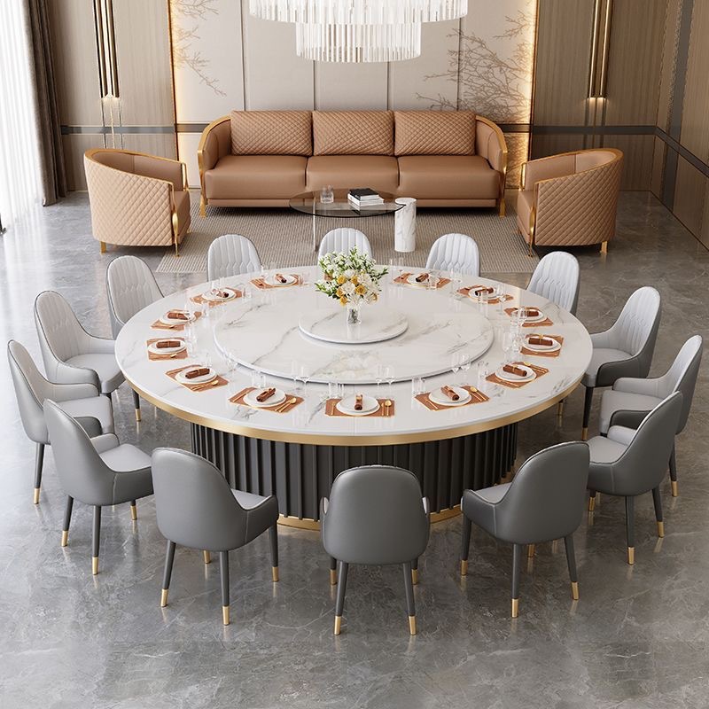 ホテル電動ラウンドテーブルスレートダイニングテーブル15人用20人用ライト高級クラブボックス一体型鍋テーブルモダン大型ラウンドテーブル