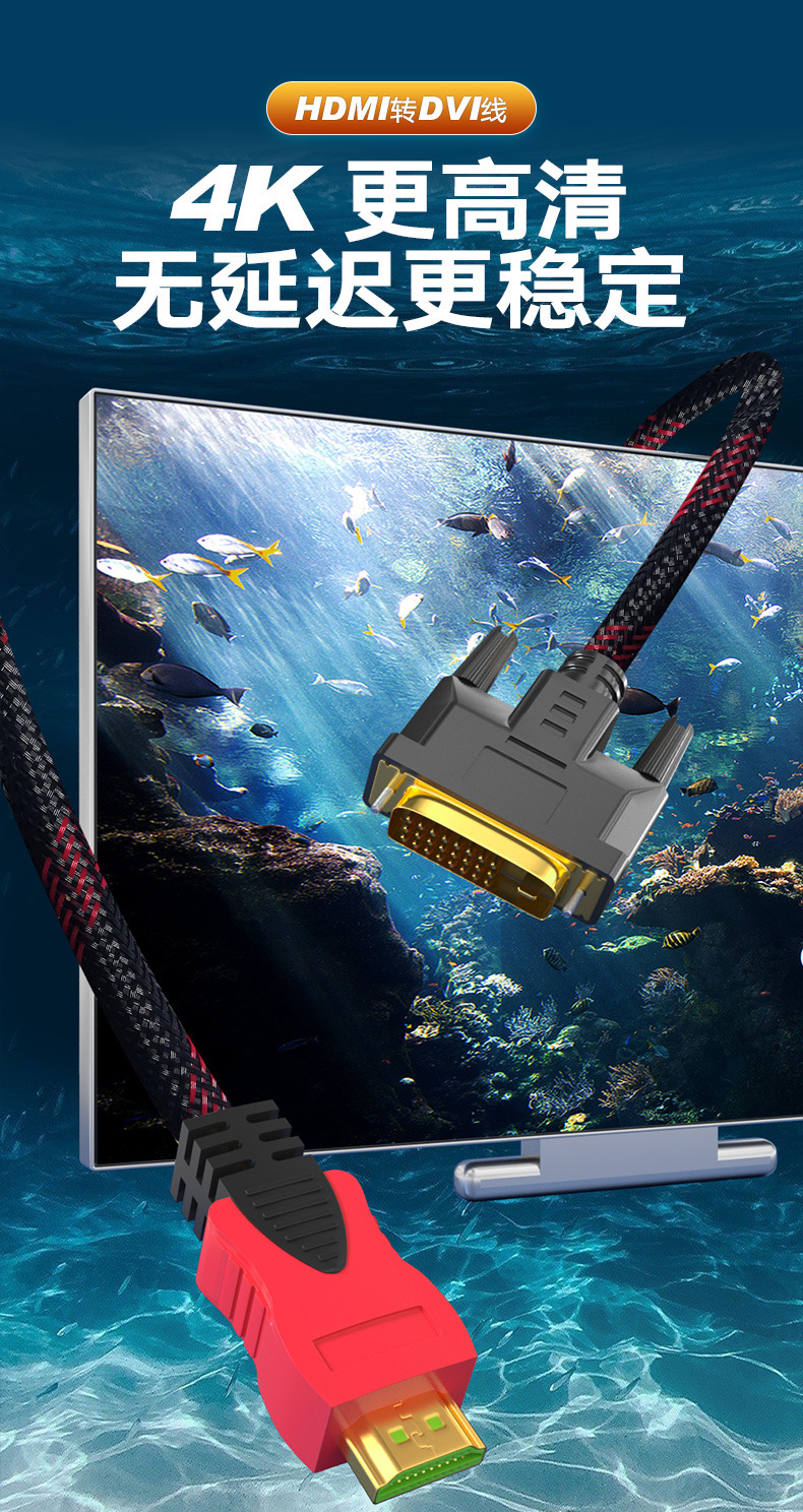 在庫あり HDMI - DVI ケーブル双方向相互変換 HDMI - DVI 赤と黒のネットワークモデル 1080P 高解像度ビデオ変換ケーブル