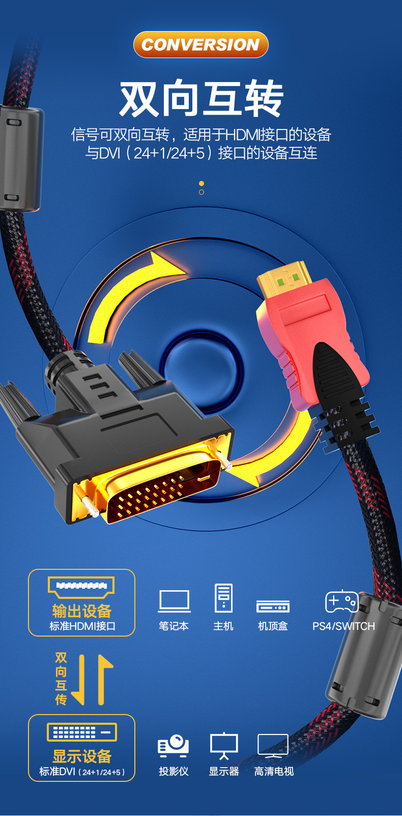 现货HDMI转DVI线 双向互转hdmi对dvi红黑网款1080P高清视频转换线