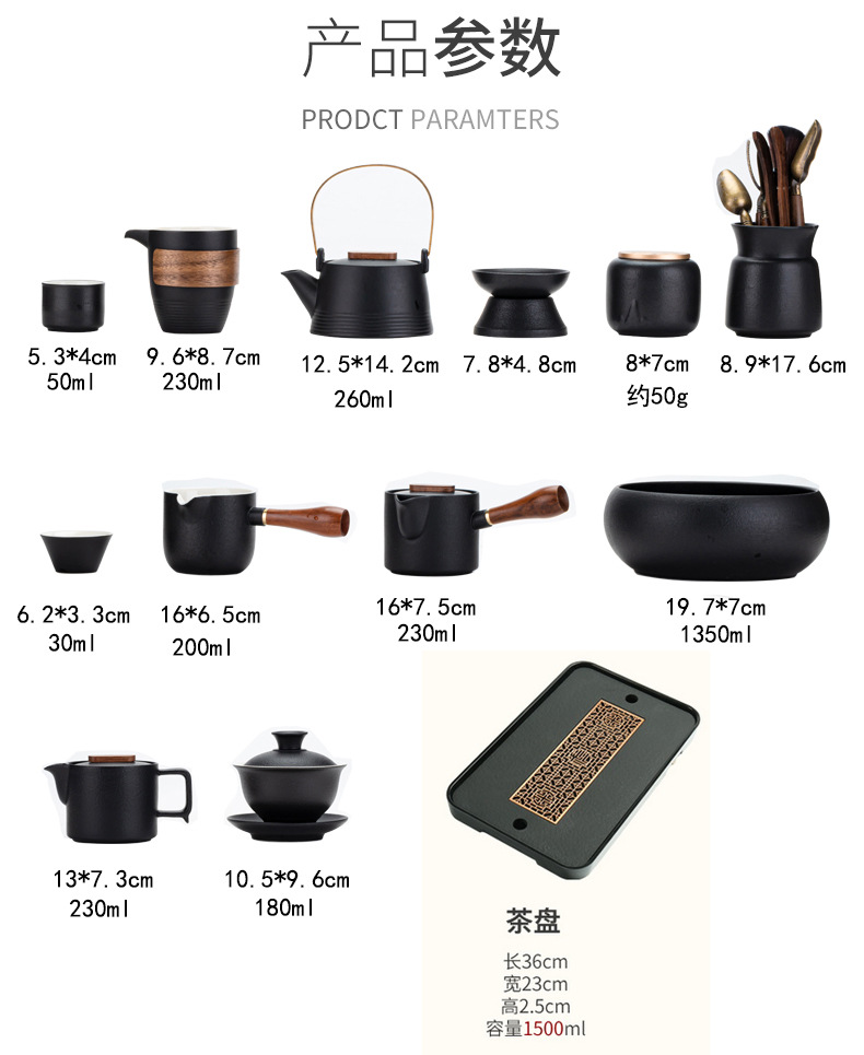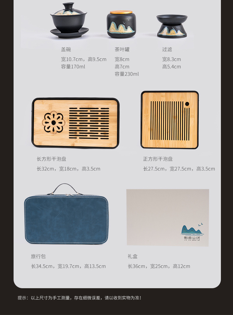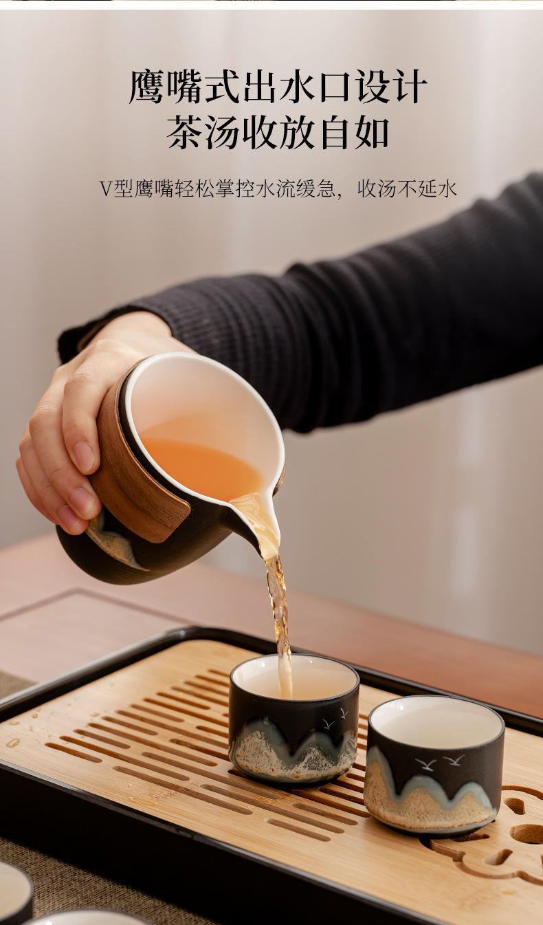 黒陶遠山工夫茶器セット陶磁器ティーポット乾燥茶盤屋外携帯収納ケース小セット茶器