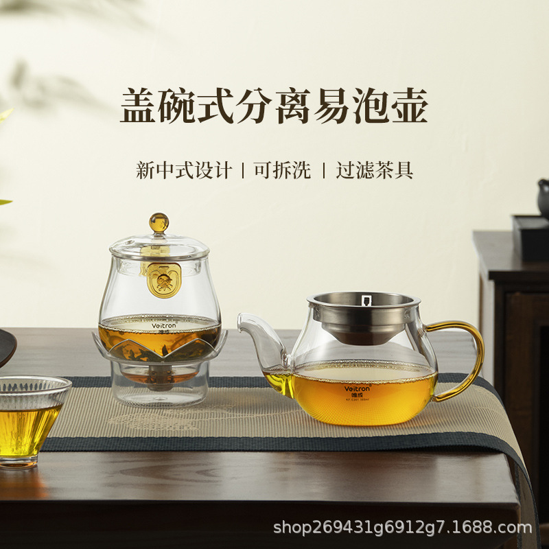 厂家批发唯成茶水分离泡茶壶家用高硼硅耐高温玻璃办公室过滤茶具