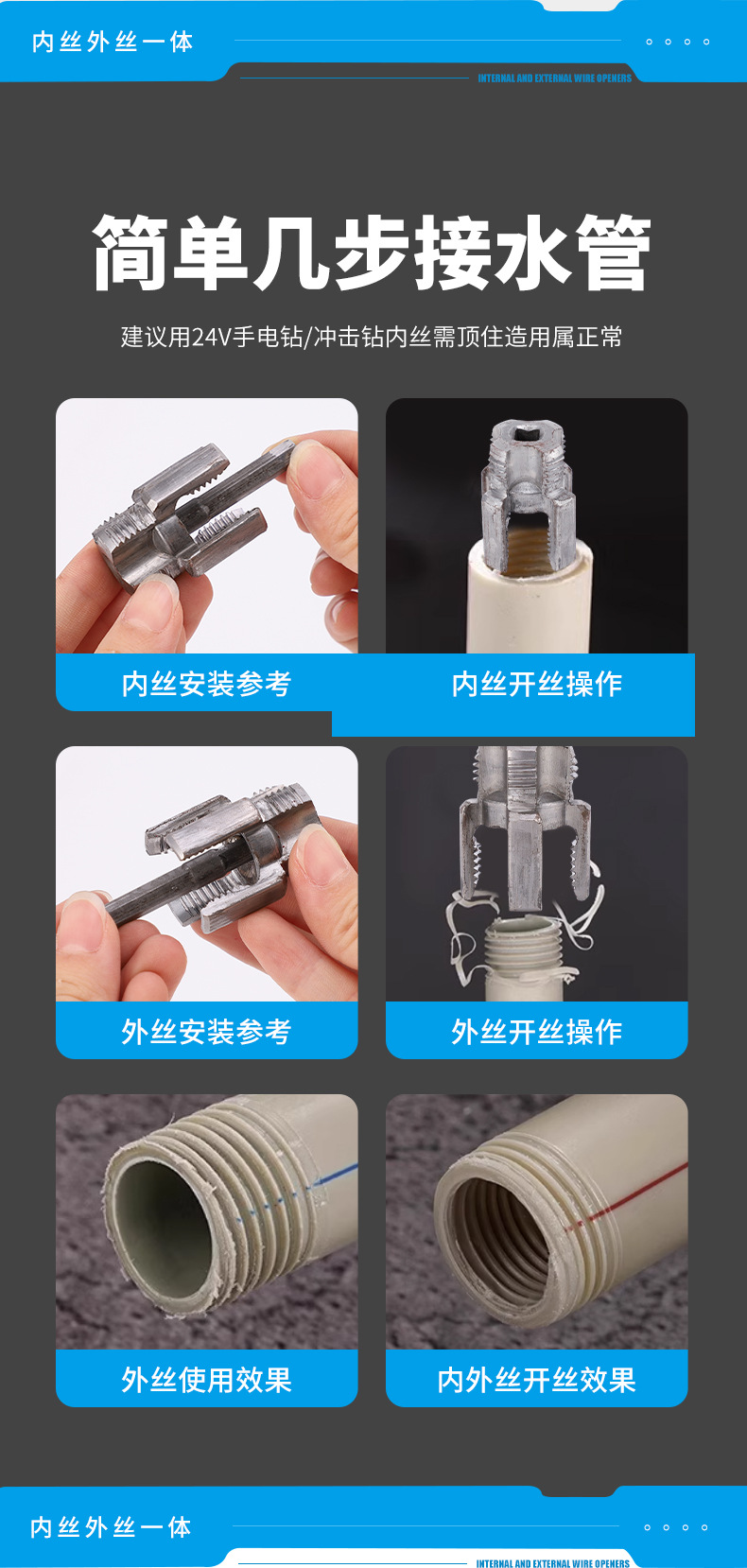 水道管内外一体開糸器内外水道管カバー4分6分管PPRねじタッピングツール板歯