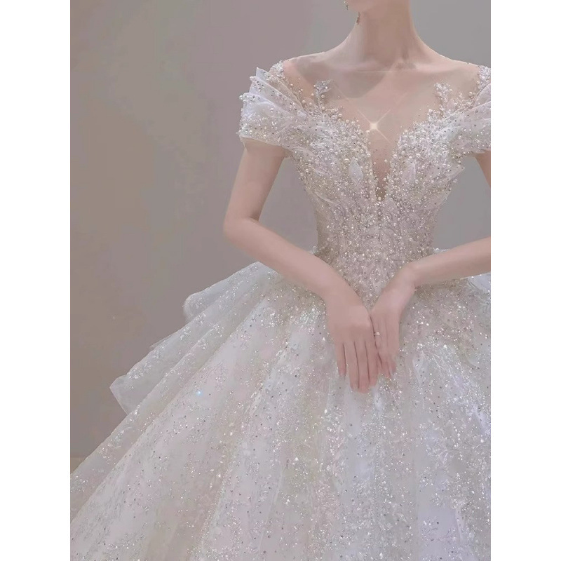 ワンショルダーメインウェディングドレスブライダル2025新作高級質感逃亡プリンセスウェディングドレス小柄な人向け