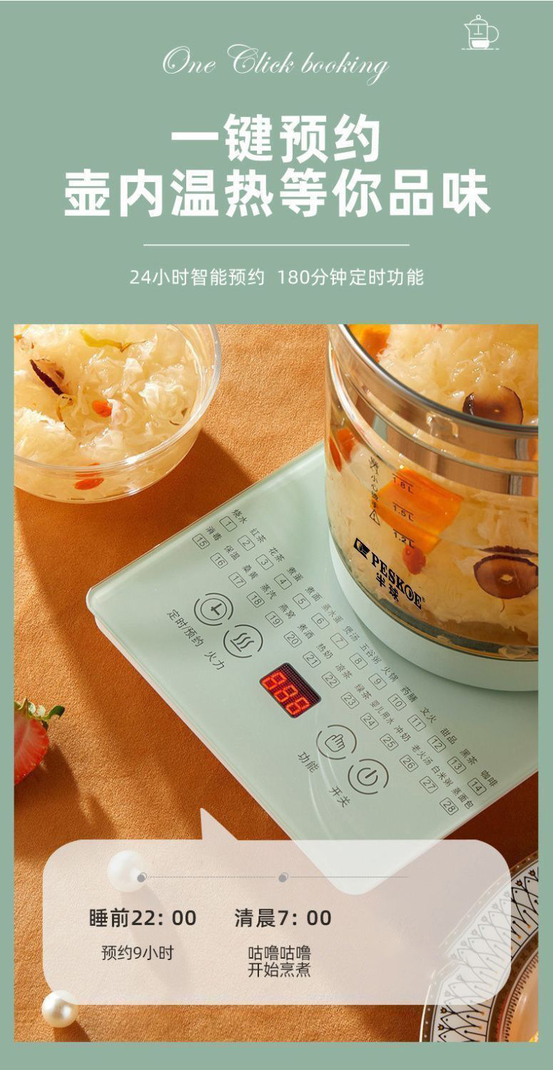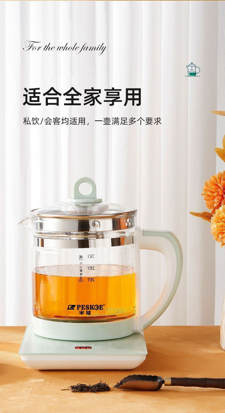 半球健康ポット多機能 1.8L 全自動茶ケトルガラス高温耐性増粘茶煎じポット