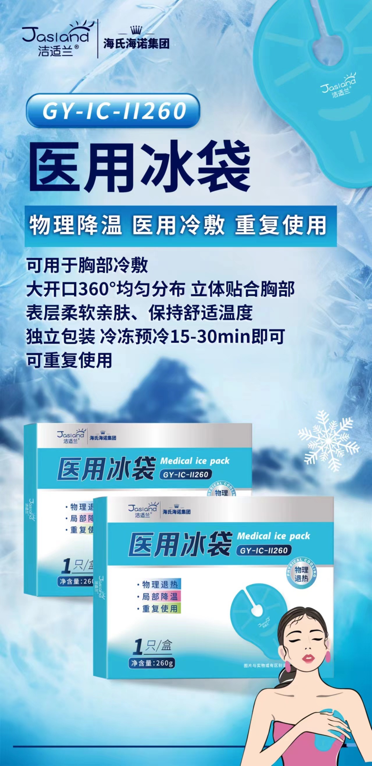 海氏海诺医用冰袋物理降温冷敷止痛消肿速冷胰岛素冷藏盒冷敷面罩