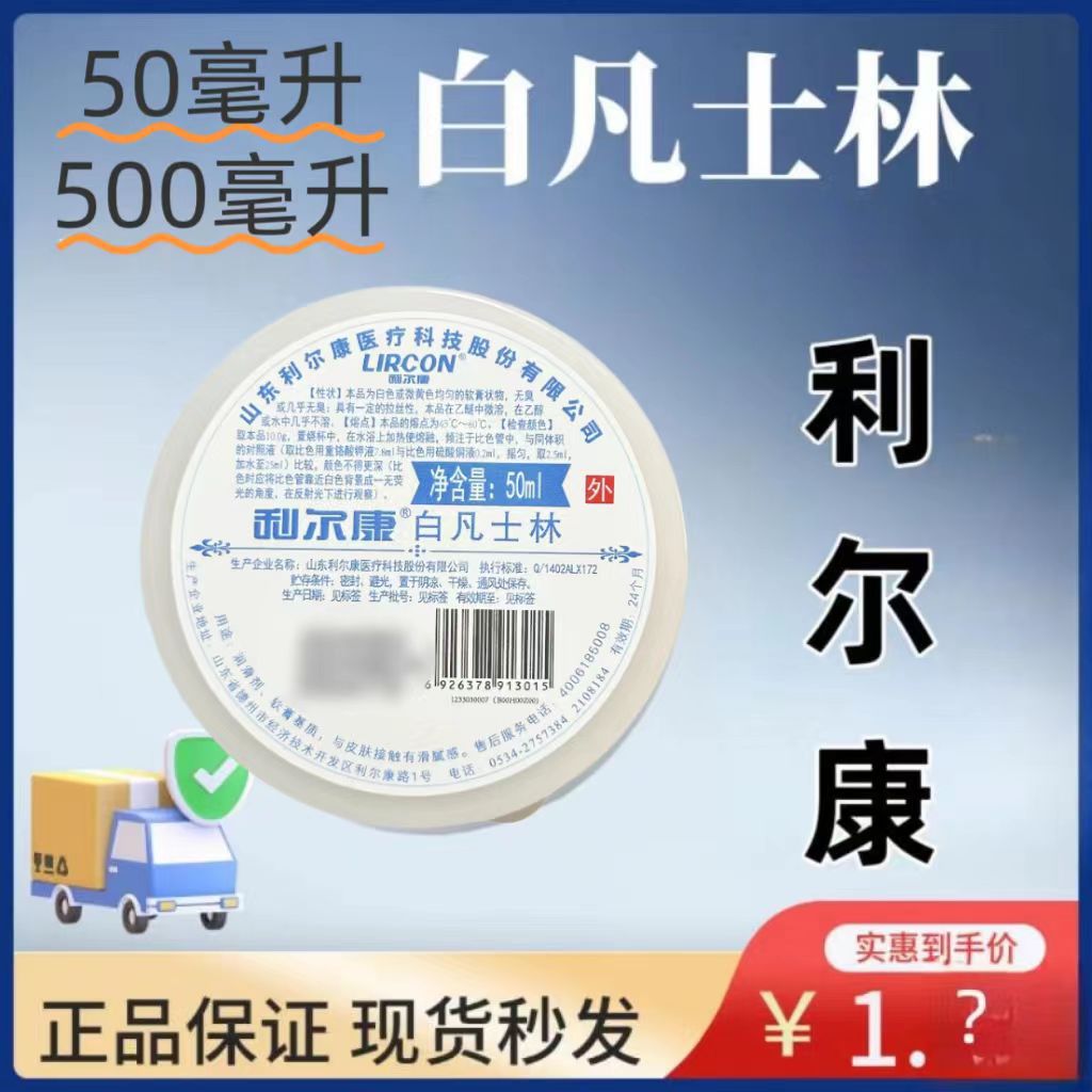 白凡士リン・リルカン50ml小型携帯用純オイル、手足の乾燥ひび割れ用、大容量ワセリンハンドクリーム