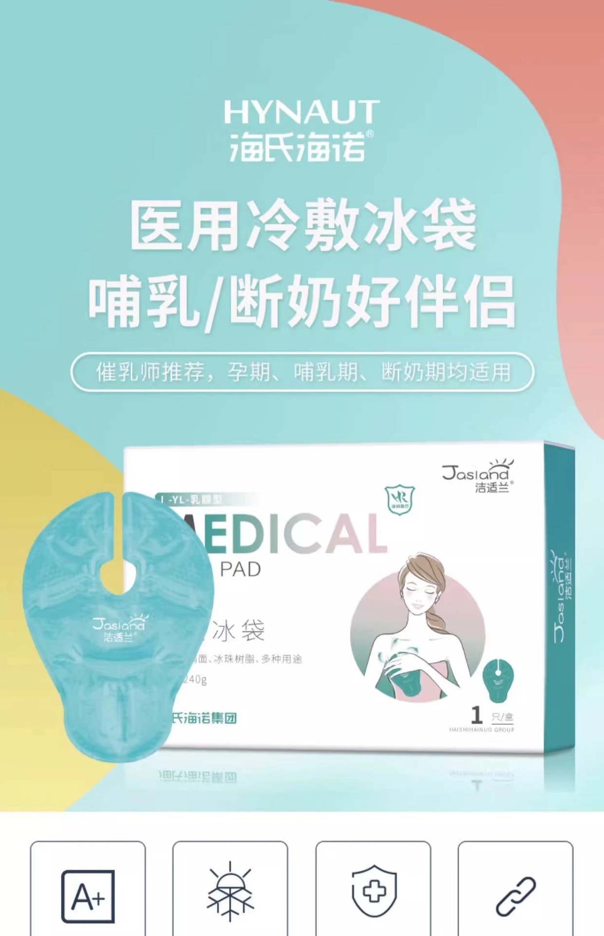 海氏海諾乳房冷パッドを貼ると、氷袋の医療用レベルが再利用できます。