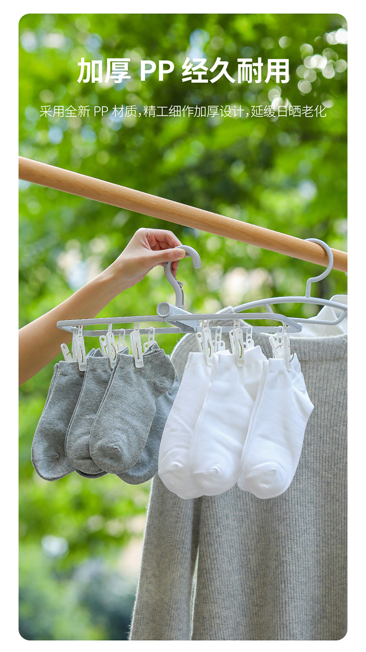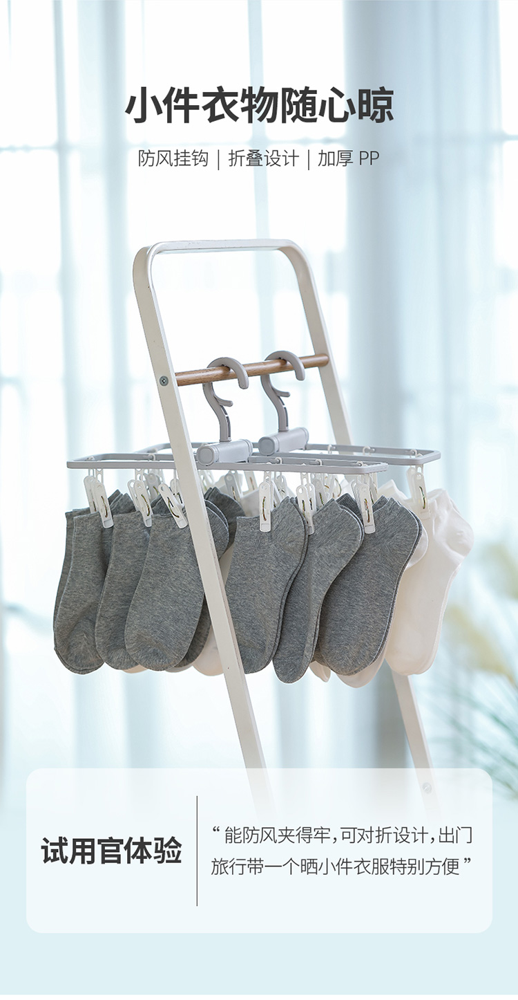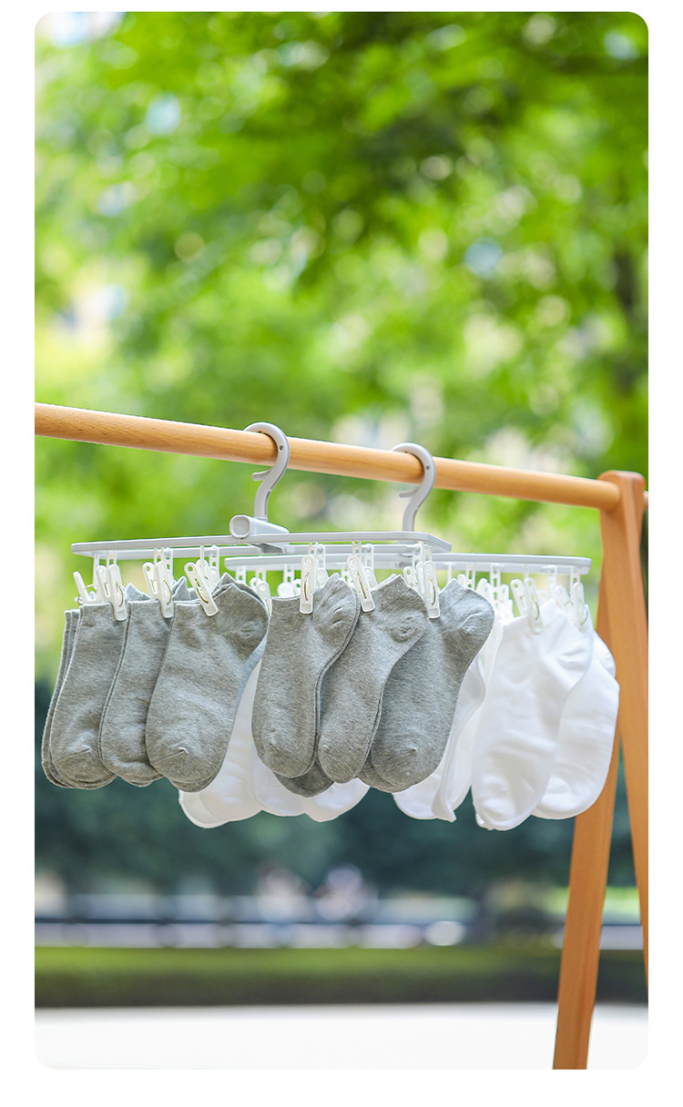 日本製物干しラック、多機能クリップ付き、折りたたみ式で持ち運び可能、靴下、ベビー服、下着、インナーの乾燥に