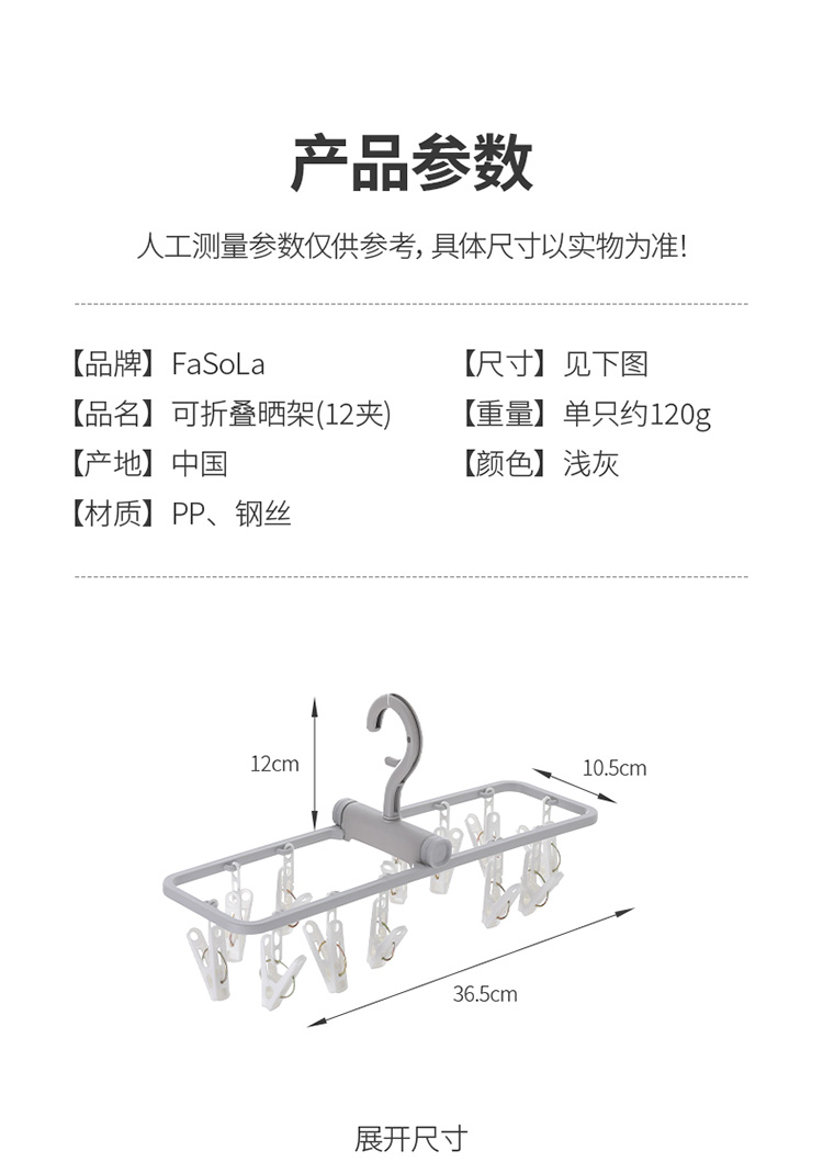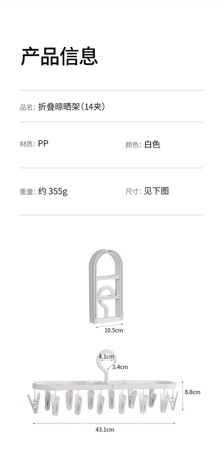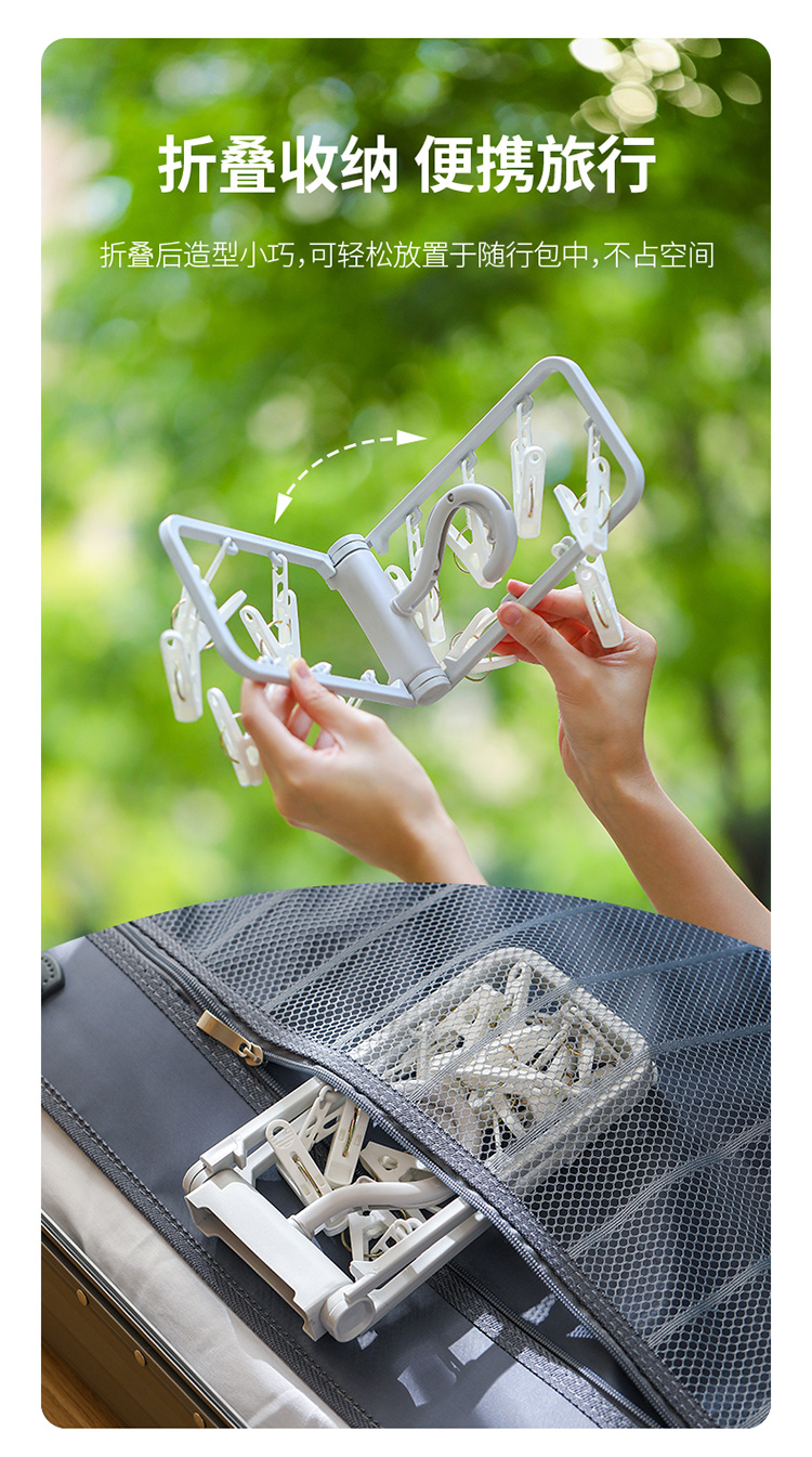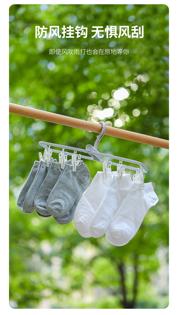 日本製物干しラック、多機能クリップ付き、折りたたみ式で持ち運び可能、靴下、ベビー服、下着、インナーの乾燥に