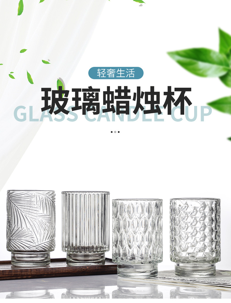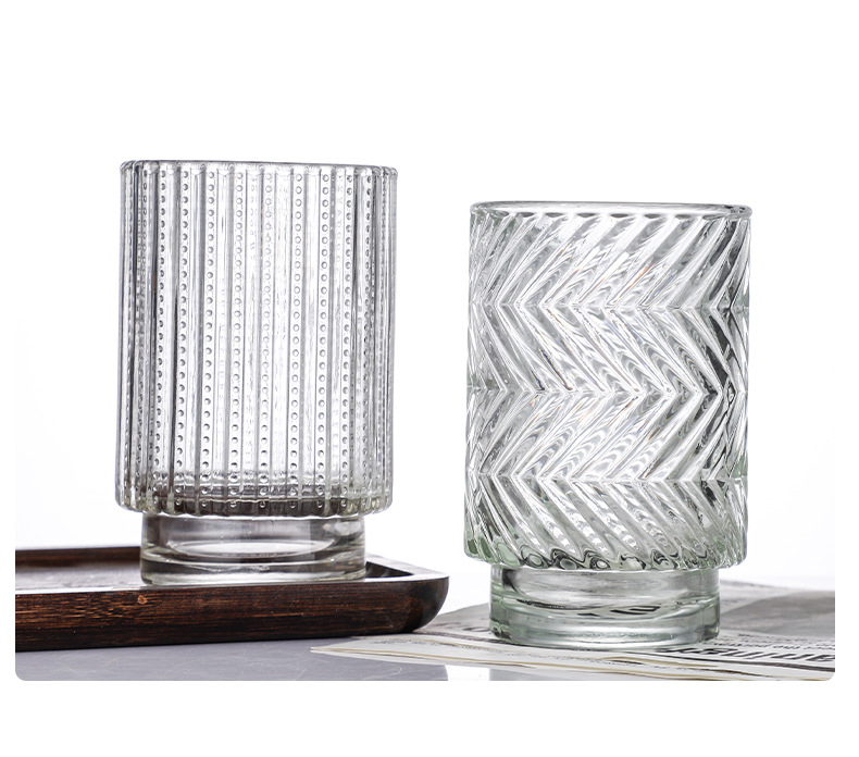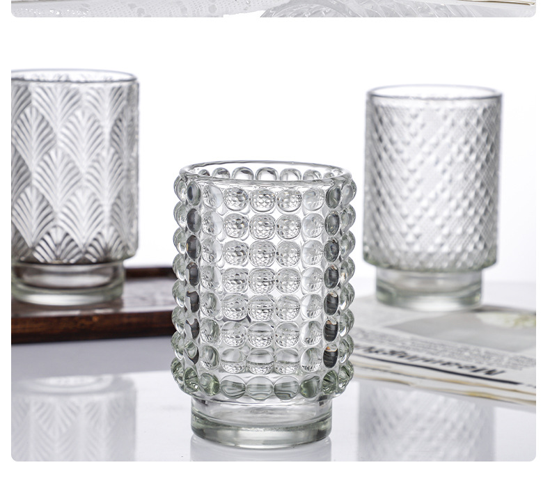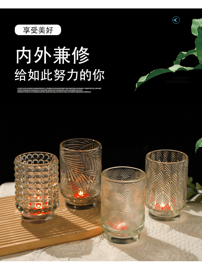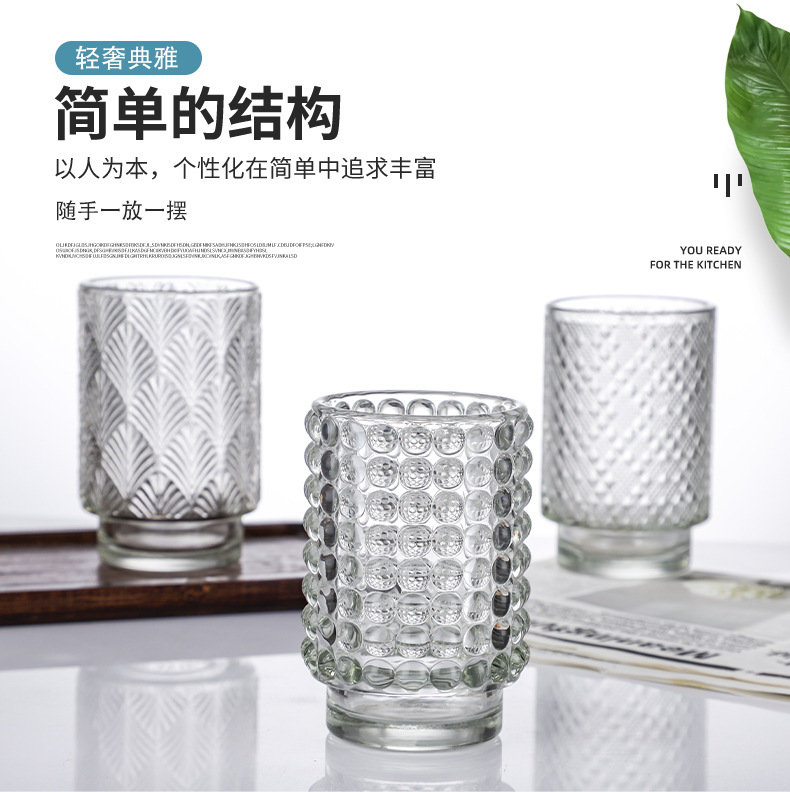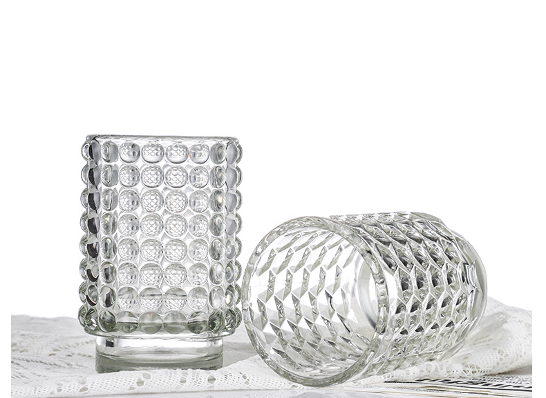 跨境北欧风透明玻璃香薰蜡烛杯花纹烛台玻璃杯台阶杯办公香氛摆件