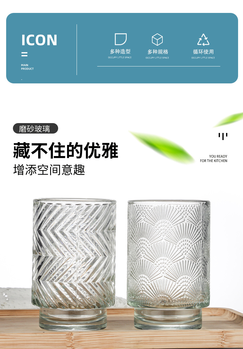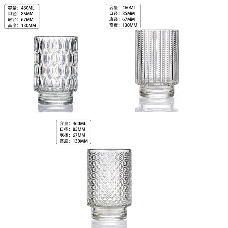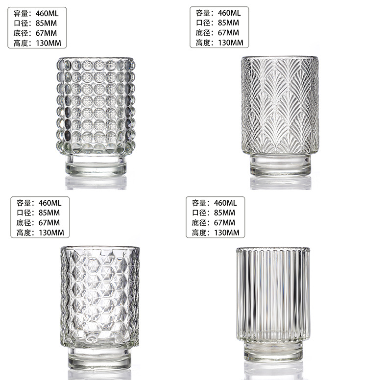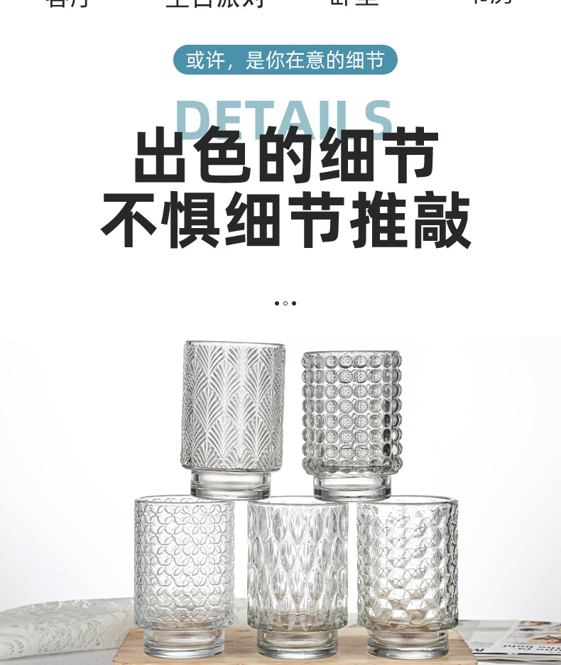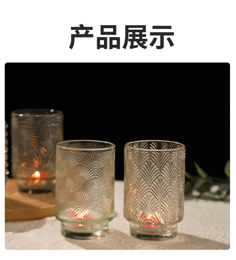 跨境北欧风透明玻璃香薰蜡烛杯花纹烛台玻璃杯台阶杯办公香氛摆件