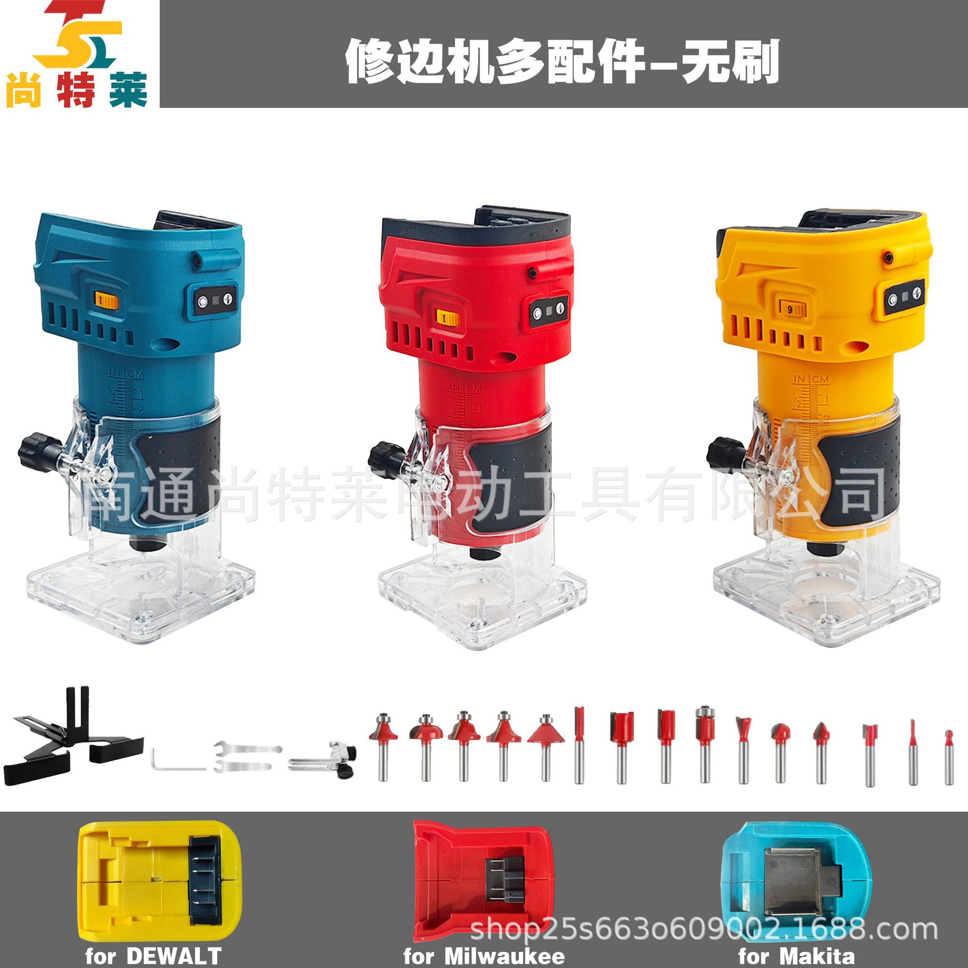 跨境亚马逊爆款21V无刷锂电木工修边机塑料机身德伟牧田美沃奇脚