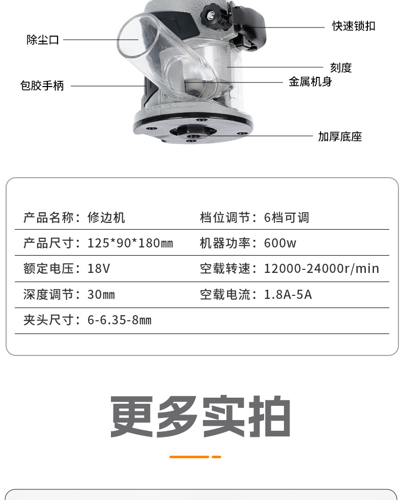 锂电修边机木工开槽机雕刻机小锣机开孔装修家用多功能电动工具