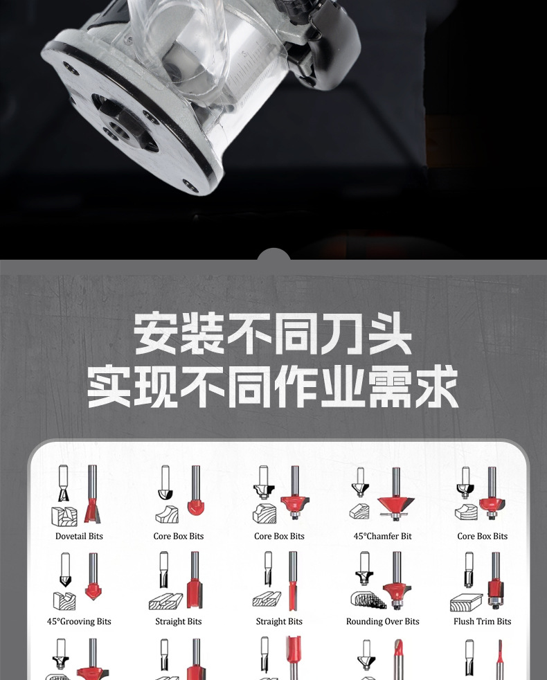 跨境亚马逊爆款21V无刷锂电木工修边机铝底座德伟牧田美沃奇脚