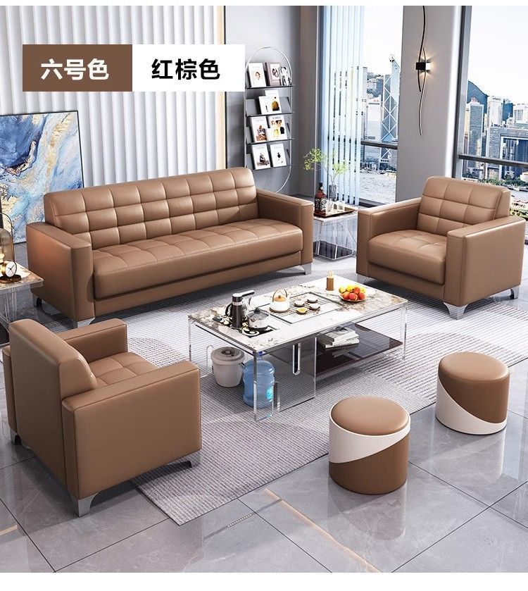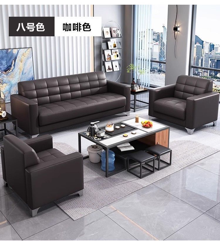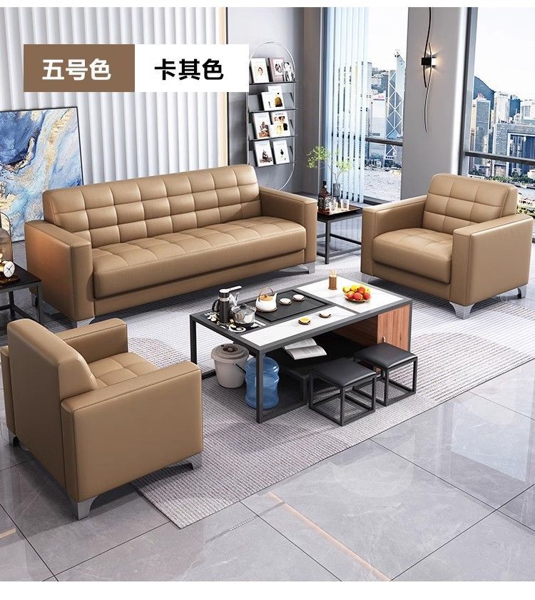 オフィスソファとコーヒーテーブルの組み合わせモダンシンプルビジネスレセプション小型レザーアートオフィス3人掛けソファ