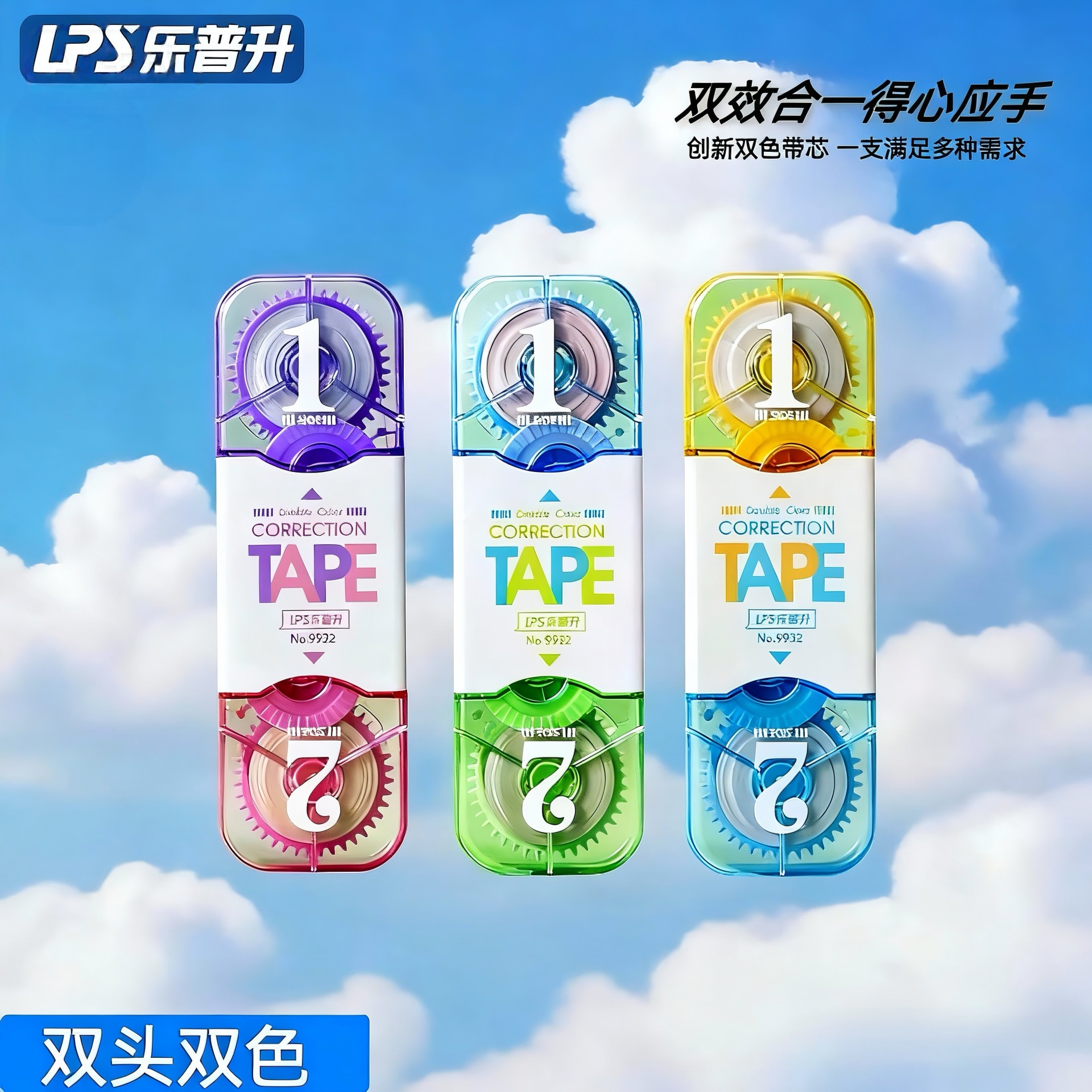 乐普升9932双头双色修正带学生原纸色隐形涂改带米黄改正带学生用