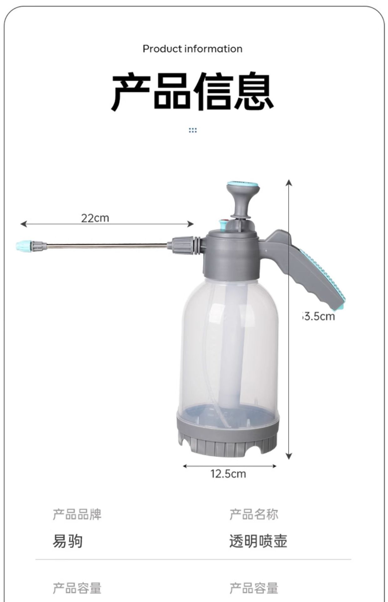 洗车泡沫喷壶带量杯透明黑色大容量3L泡沫壶透明喷壶喷水壶浇花壶