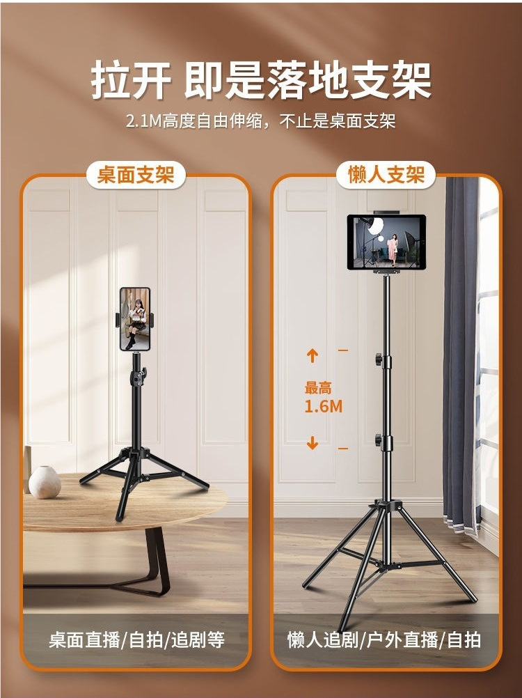 携帯電話ホルダー、ライブブロードキャスト機器、多機能三脚、デスクトップアンカー、Kuaishou、写真撮影、補助光、自撮り棒、ユニバーサル