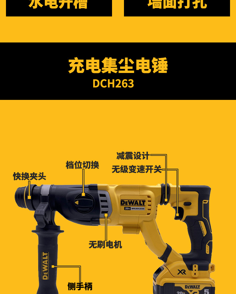 オリジナル DEWALT ブラシレス充電式 18V リチウム電動ハンマーダストボックスダストフリーパンチング DCH263